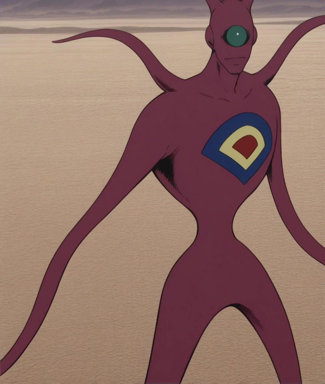 juraru, alien, green eye, no hands, long arms, fang,