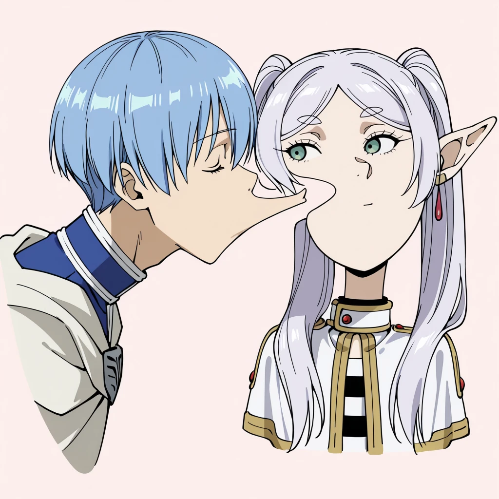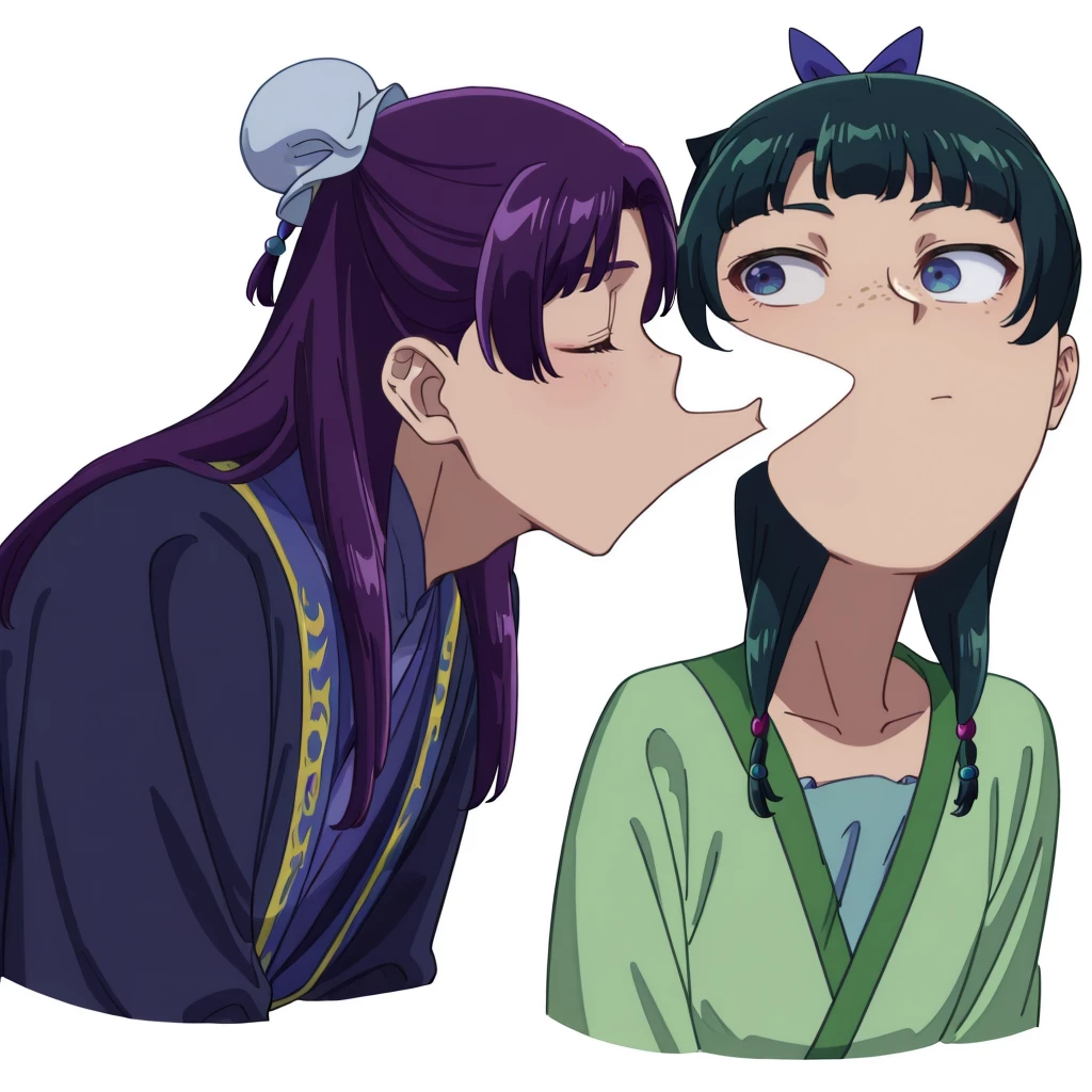 Posts referencing a doodle of Jinshi trying to kiss Maomao on her cheek, resulting in Maomao trying to evade it by deforming her face with a blank expression.