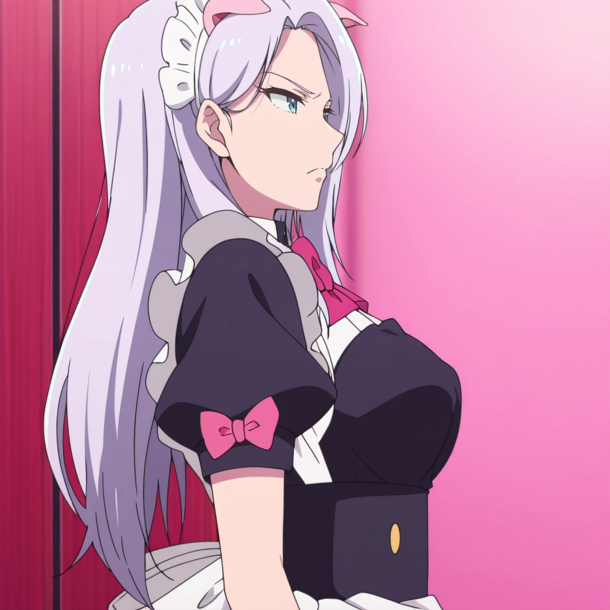 ZoyaMaid, maid, apron, maid headdress, maid apron, bow, enmaided, short sleeves, dress, pink bow, puffy sleeves, frills, white apron, bowtie, animal ears, pig ears,