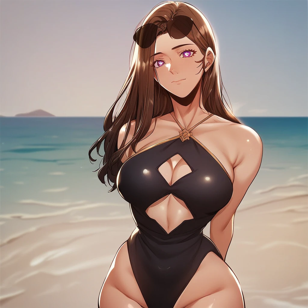 11. ((sexy ?????? obscene black deeply cut-out swimwear, luxury black sunglasses on forehead, ))