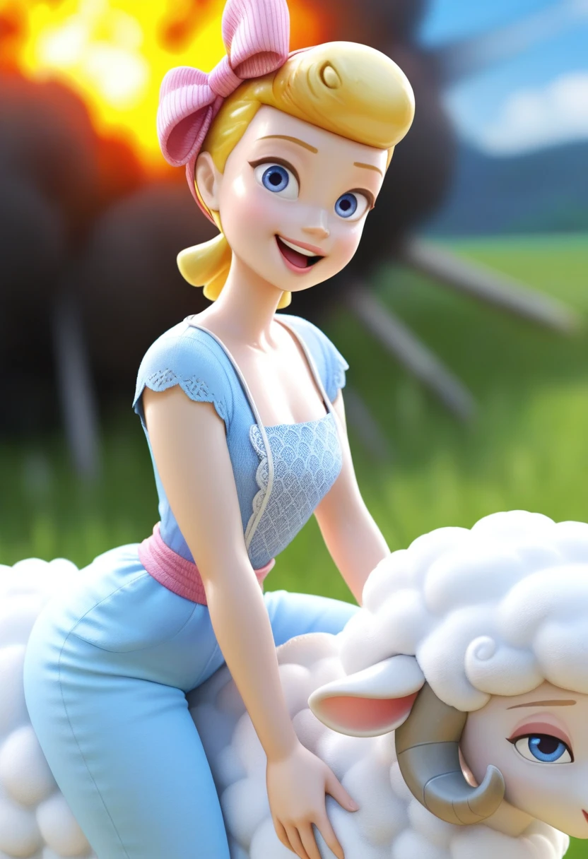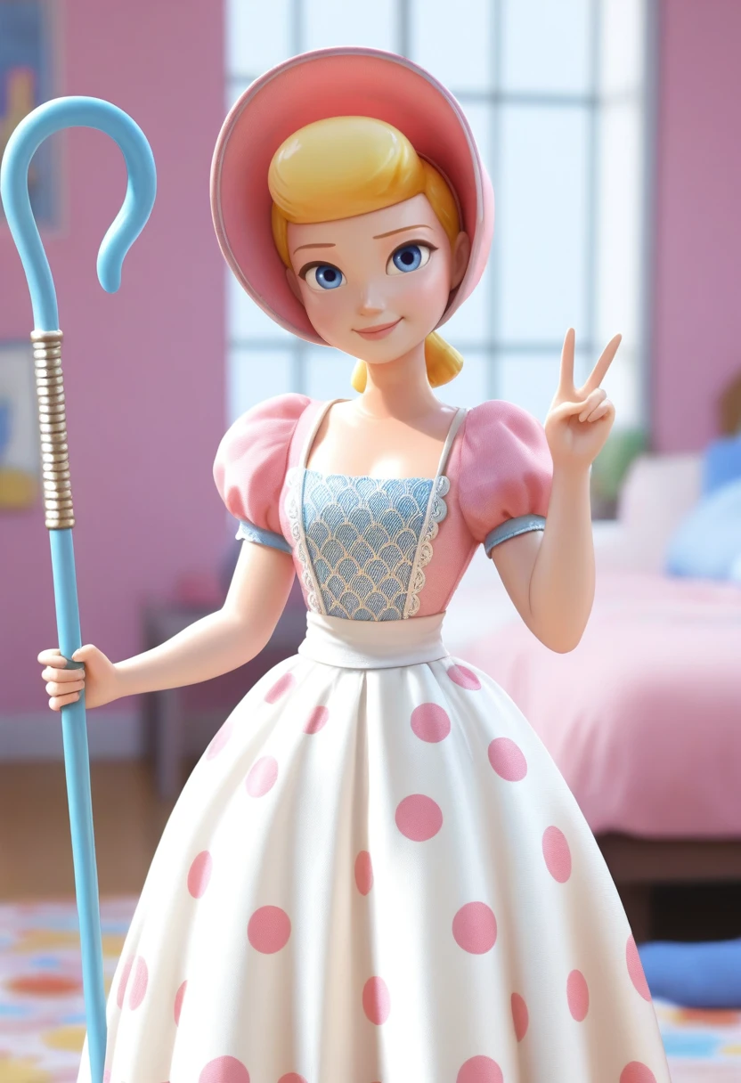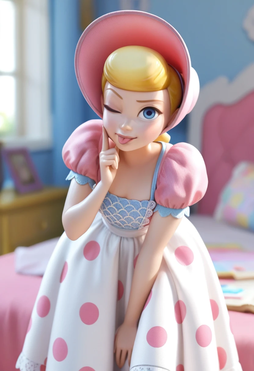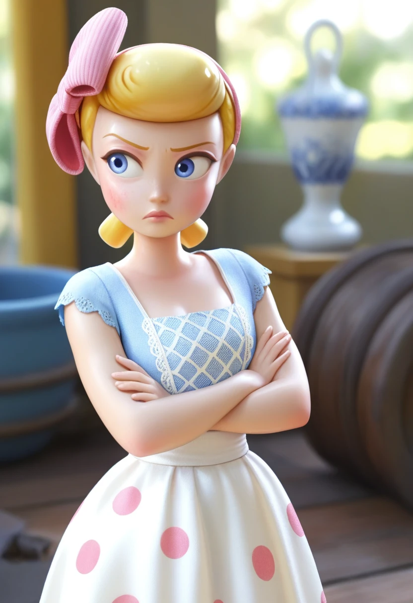 TSbopeep, porcelain figurine, blonde hair, short hair, blue eyes, lips, 1girl, solo, official style