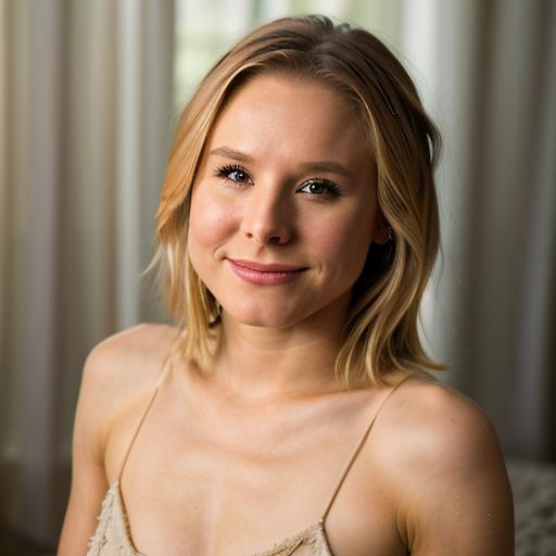 My second attempt at a portrayal of kristen bell. I hope dax shepherd likes this. It probably should be used less than 1.0, I did some of these at 0.6 . Otherwise her cheeks puff out.