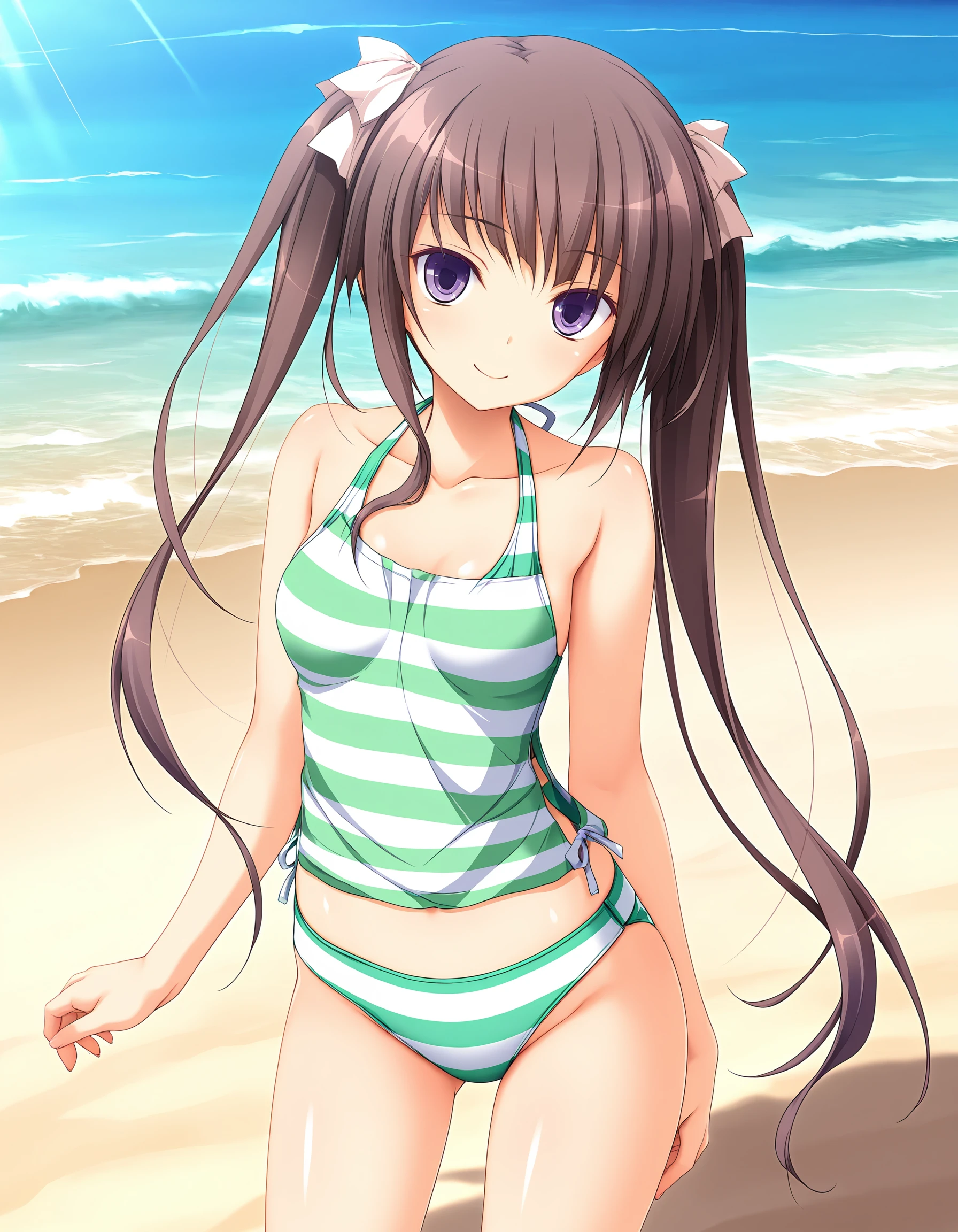 outfit06, swimsuit, 2-piece swimsuit, green swimsuit, stripe swimsuit
