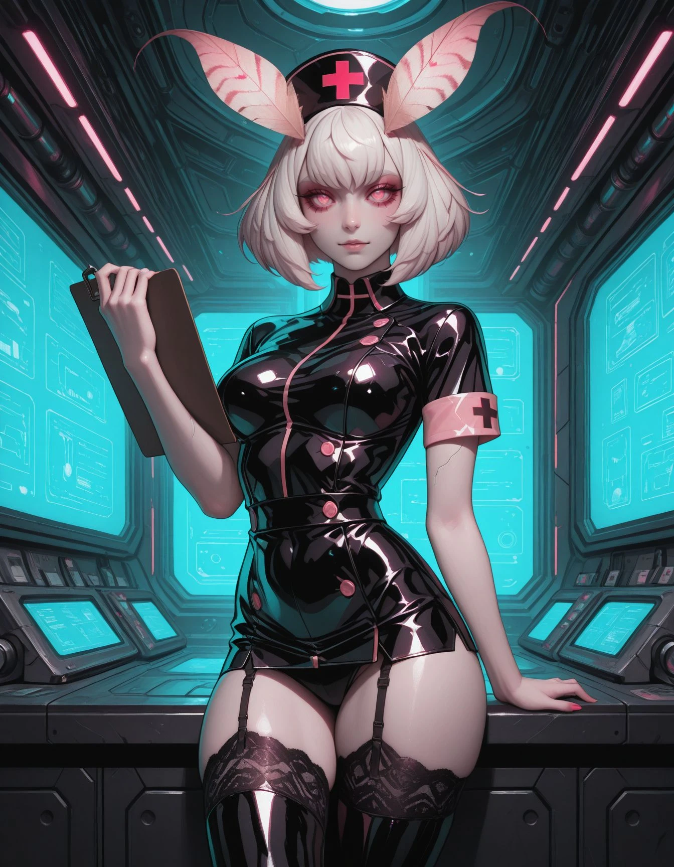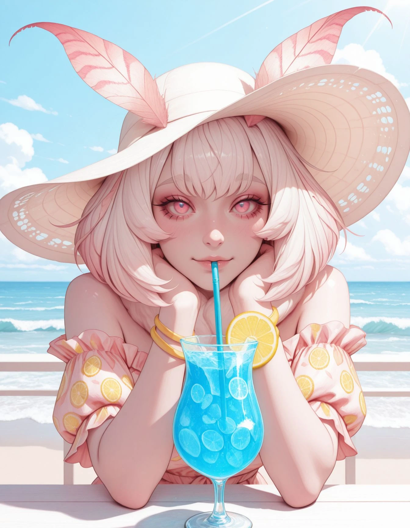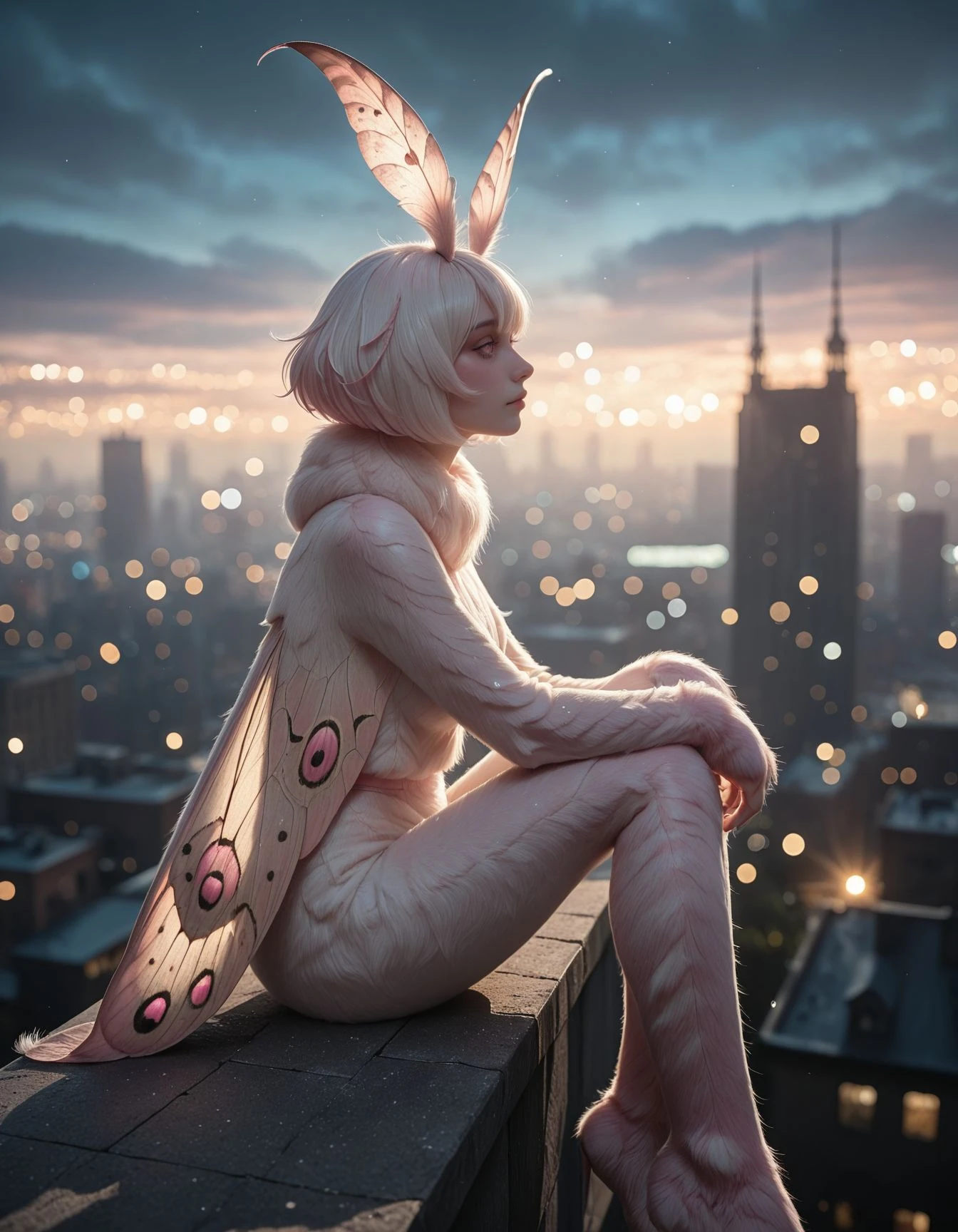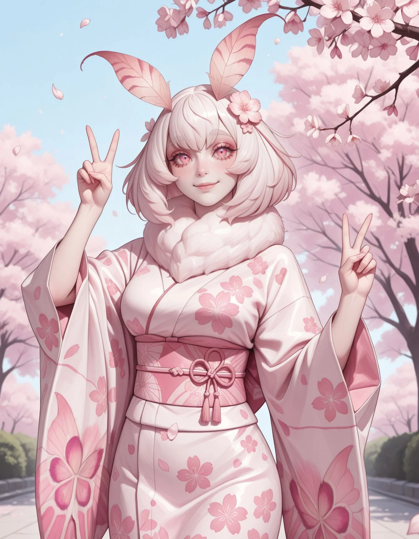 OCMithr4, moth Girl, White hair, pink eyes, short hair, antennae