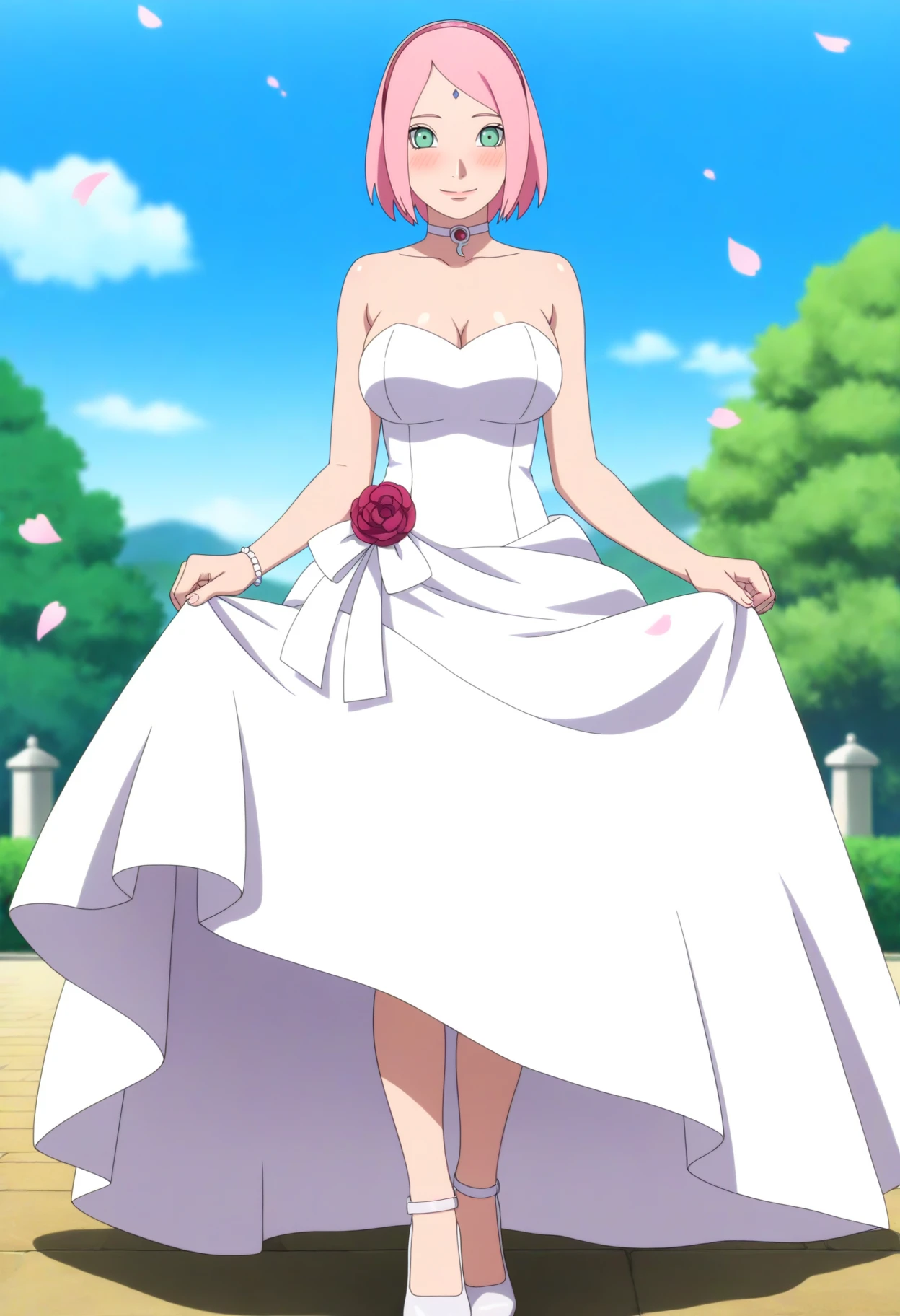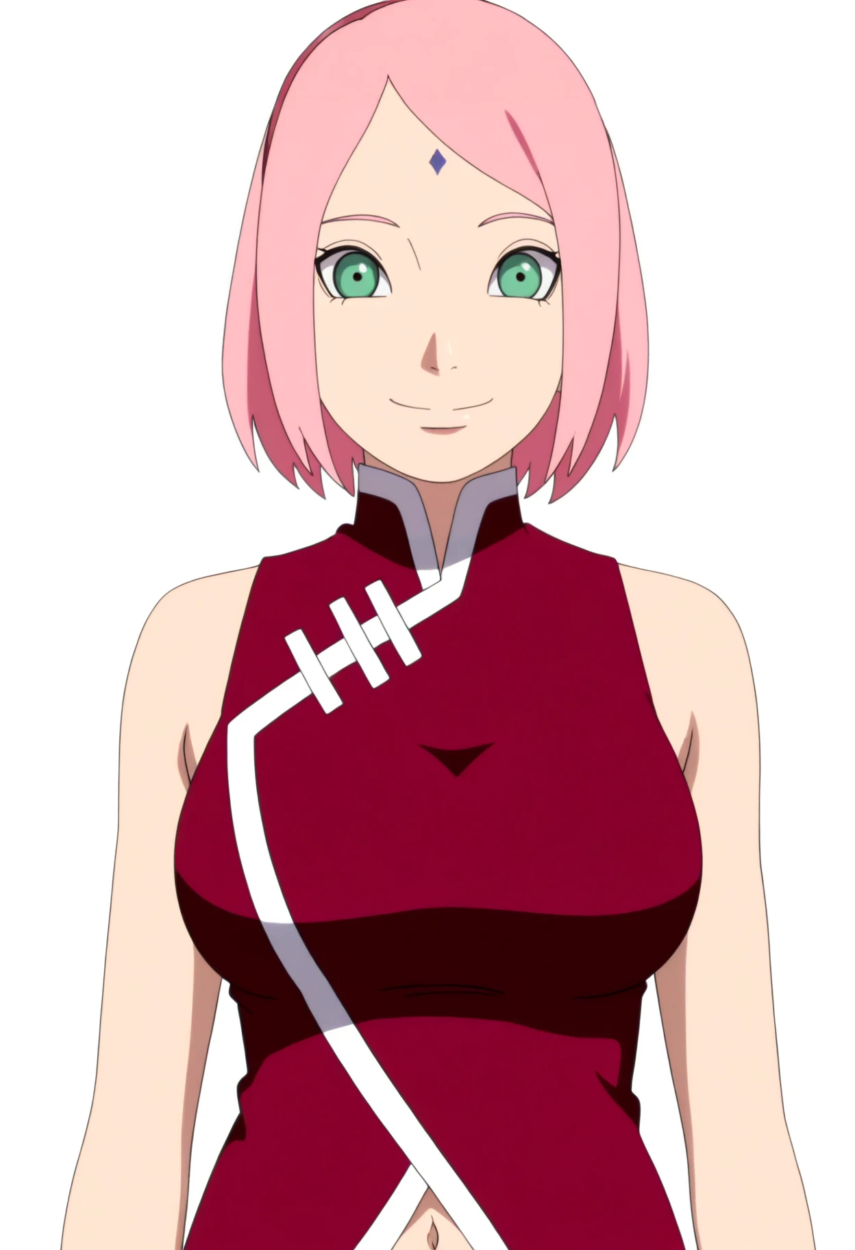 Basic prompts : 1girl, haruno sakura, pink hair, short hair, green eyes, forehead mark, hairband