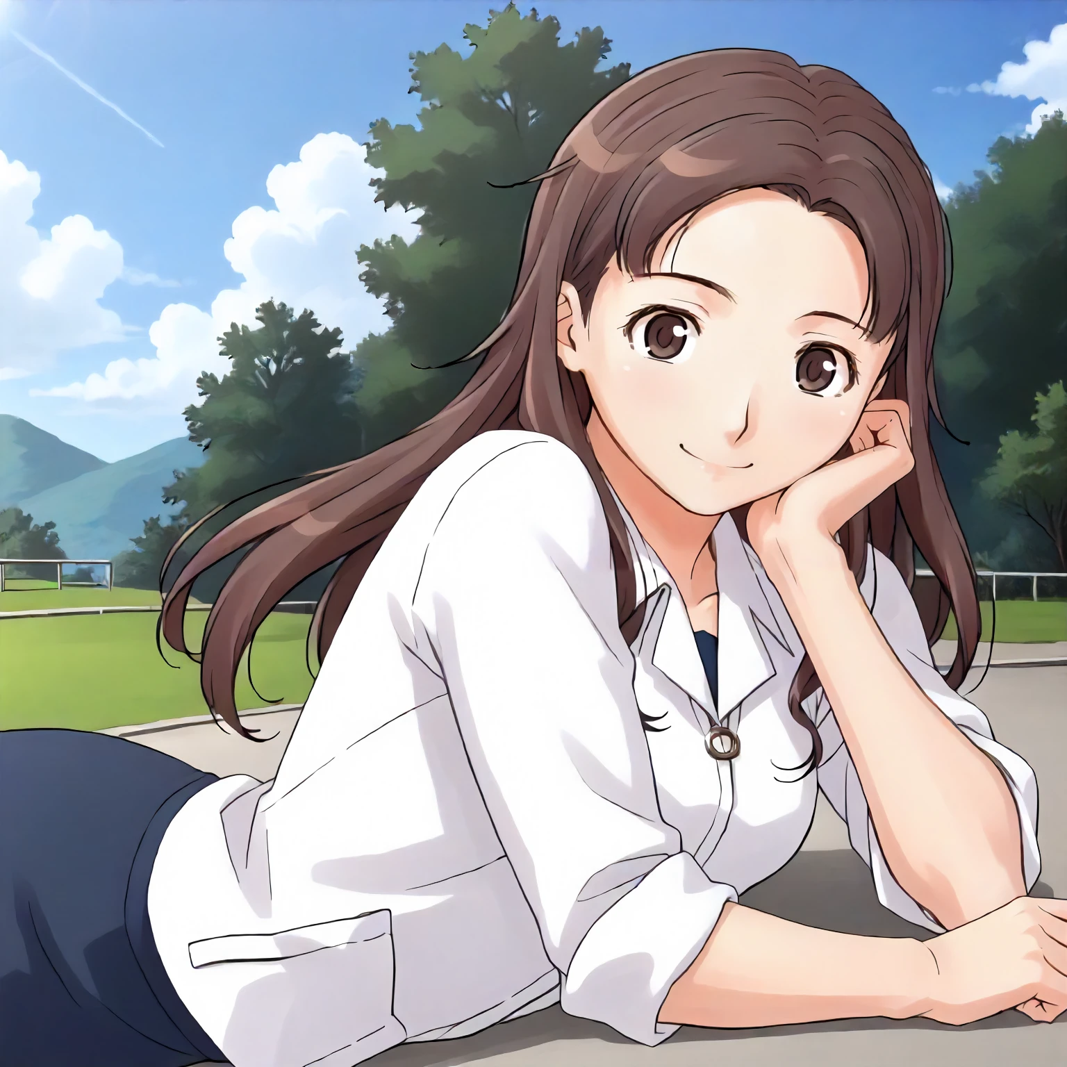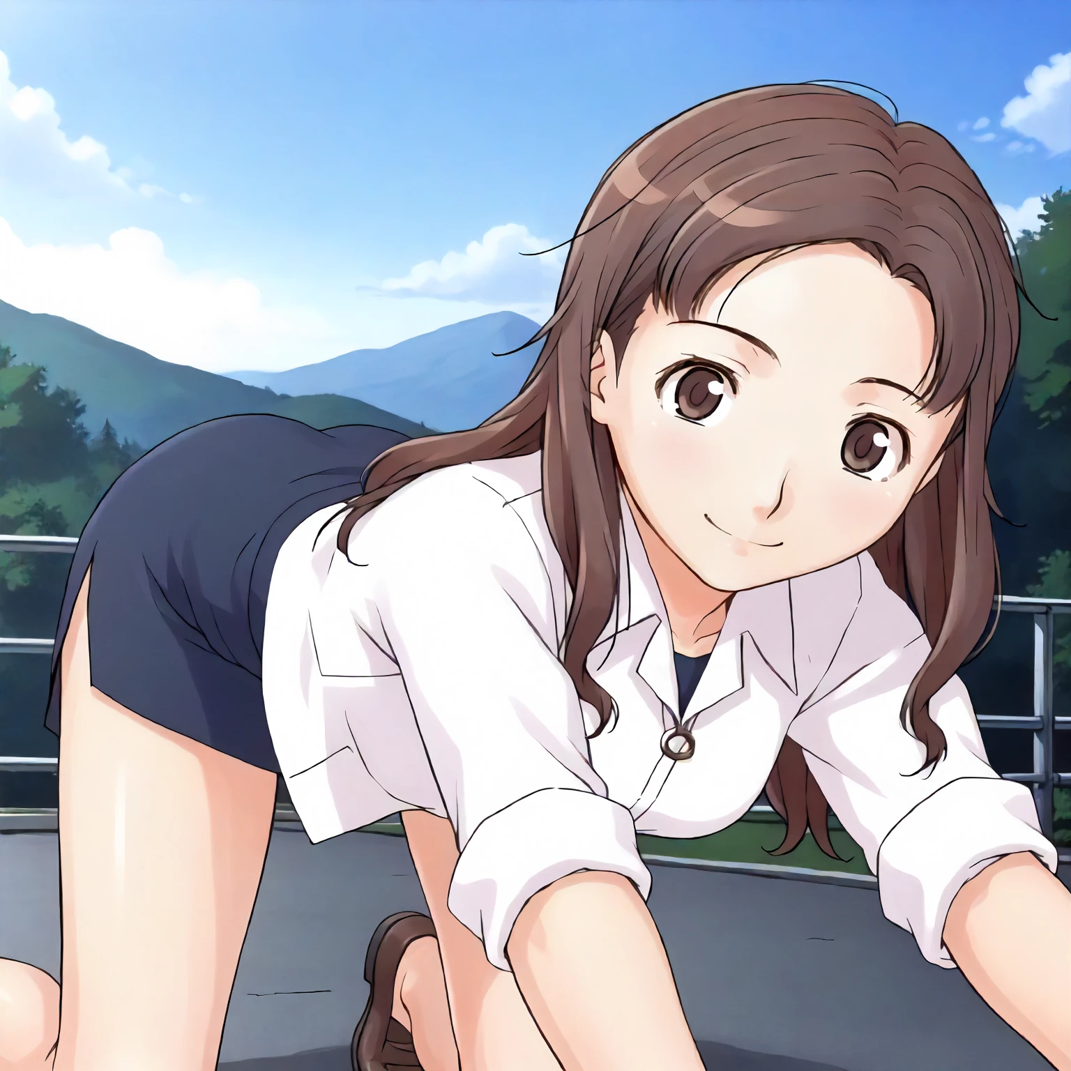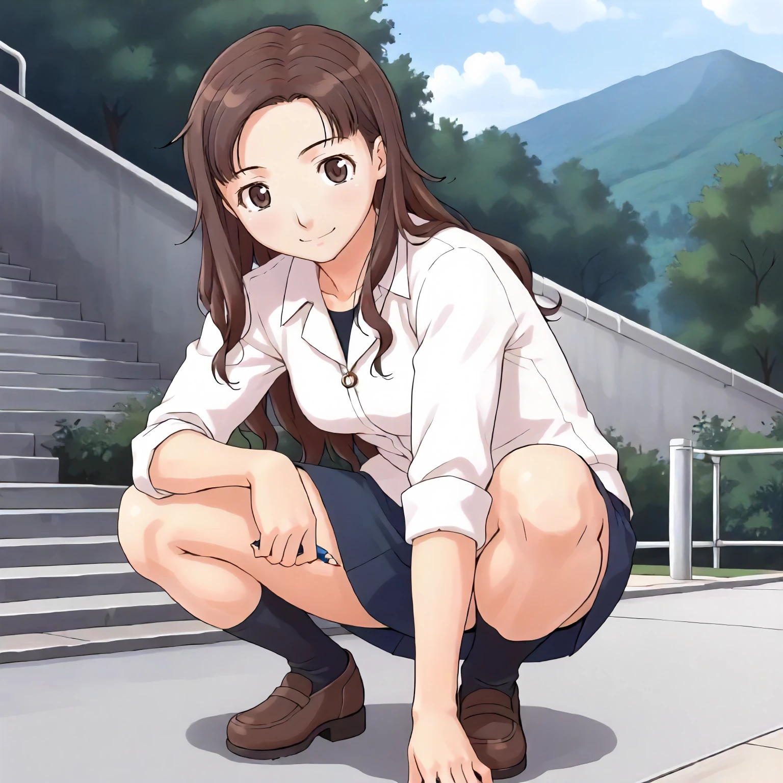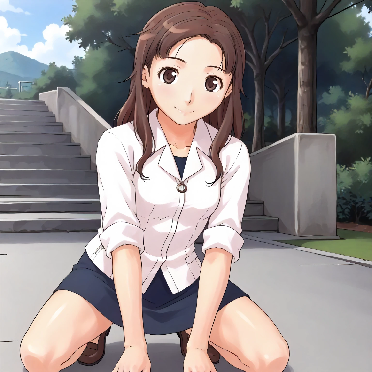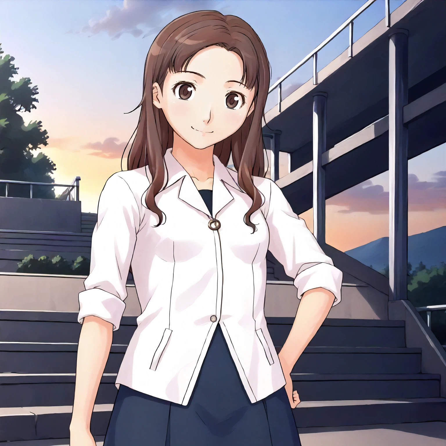 TomokoKawada,1girl,brown hair,long hair,brown eyes,