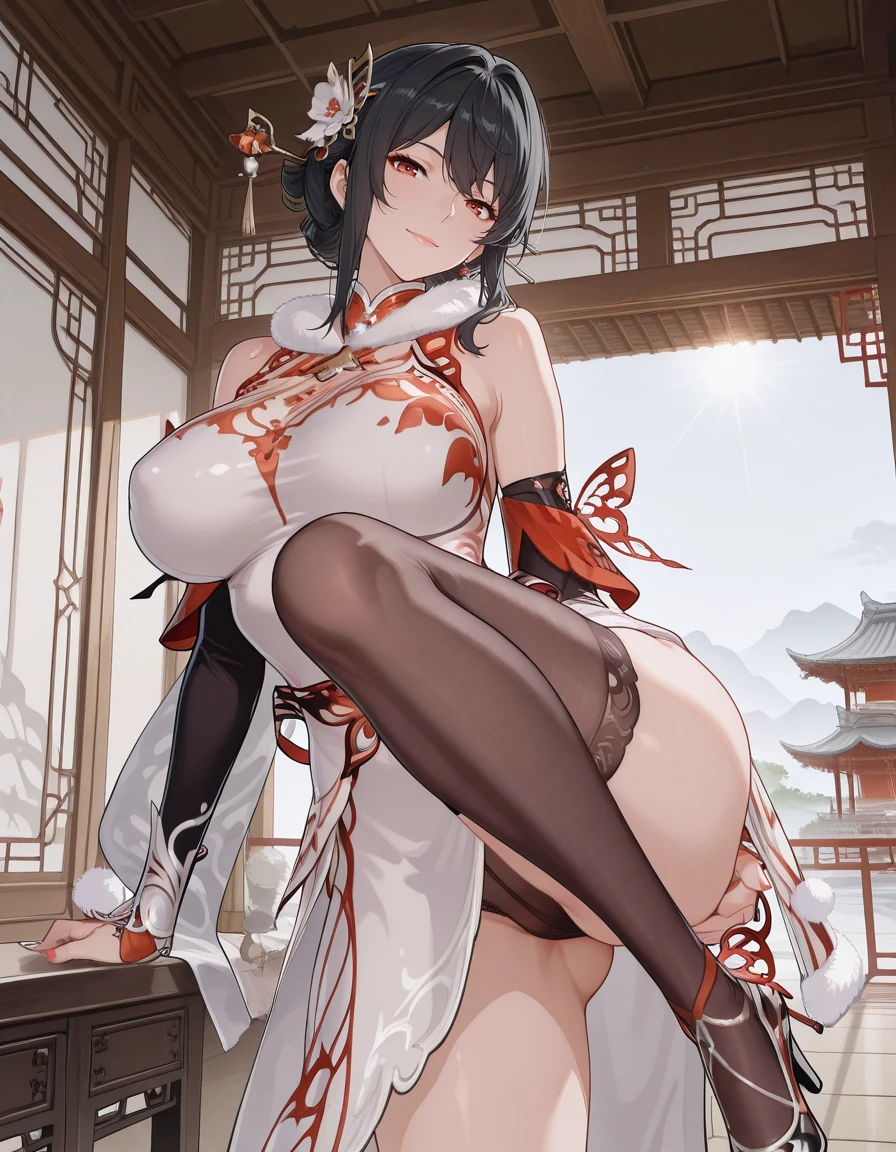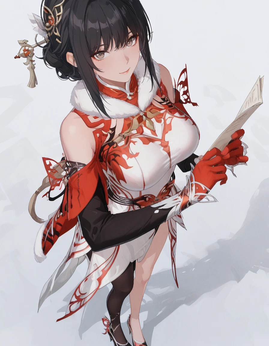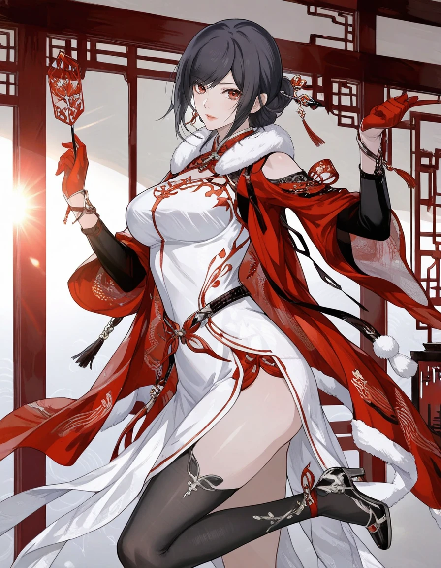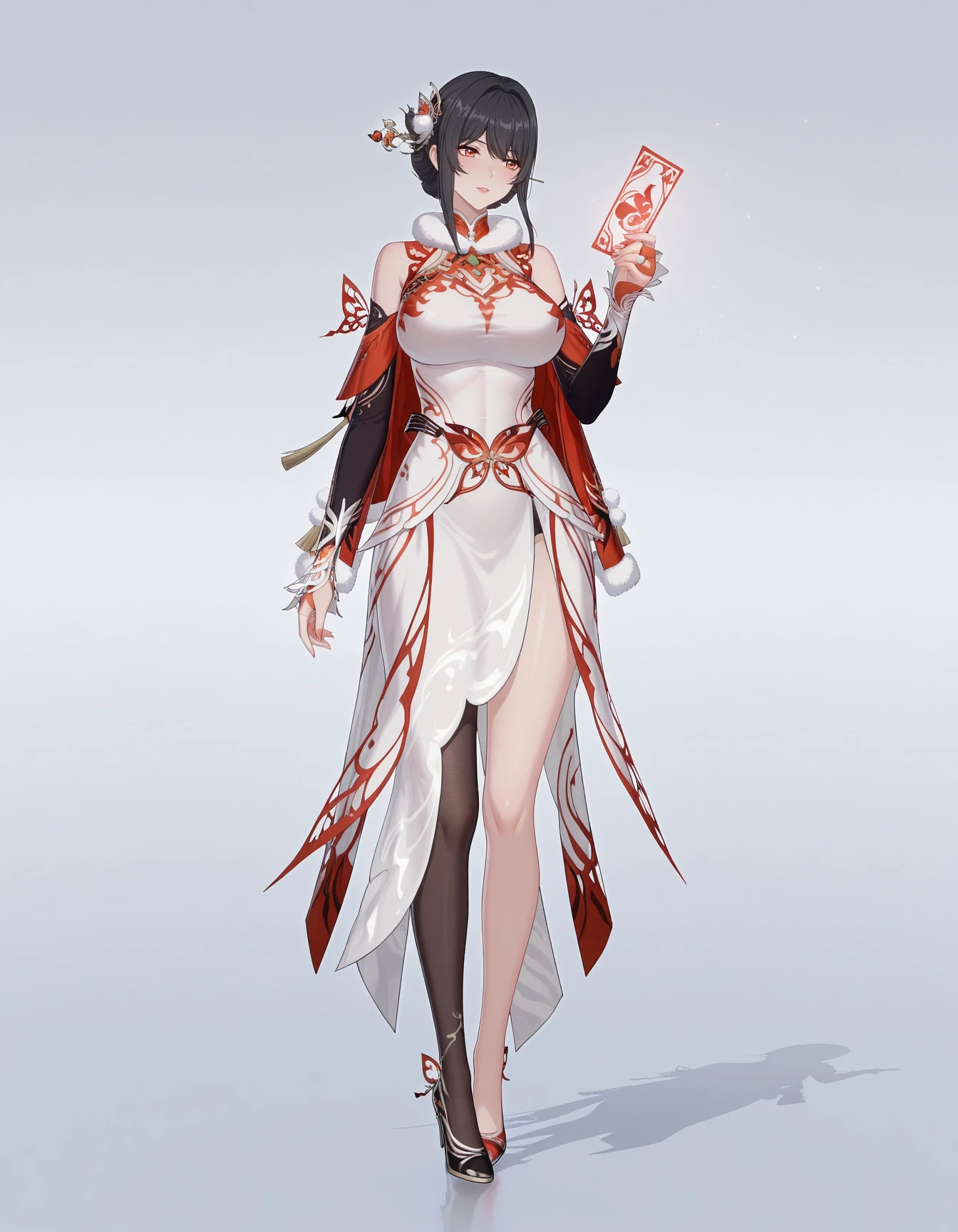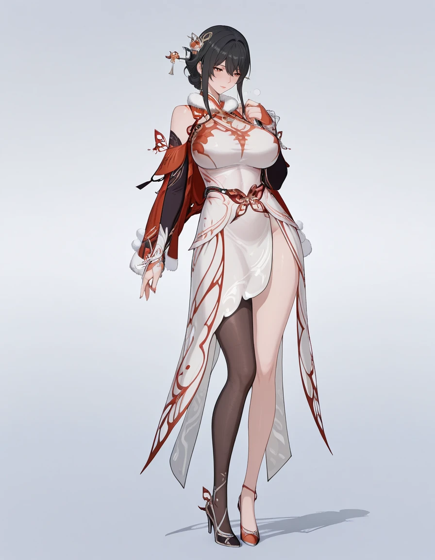 mai_pgr_hanying_tx_hyxc,1girl,(aget_up:1),white_dress,chinese_clothes,black_hair,hair_ornament,gloves,fur_trim,hair_stick,single_leg_pantyhose,large_breasts,asymmetrical_legwear,fur_collar,high_heelsRecommend preferred Strength: 0.7~1.