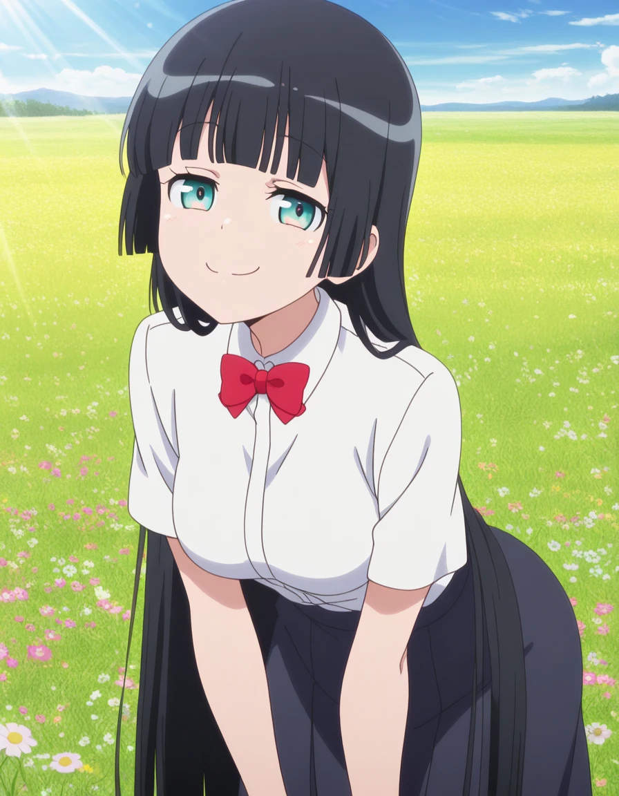 akemi souryuuin, long hair, bangs, black hair, very long hair, blunt bangs, aqua eyes, hime cut, mature female, medium breasts, anime screencap