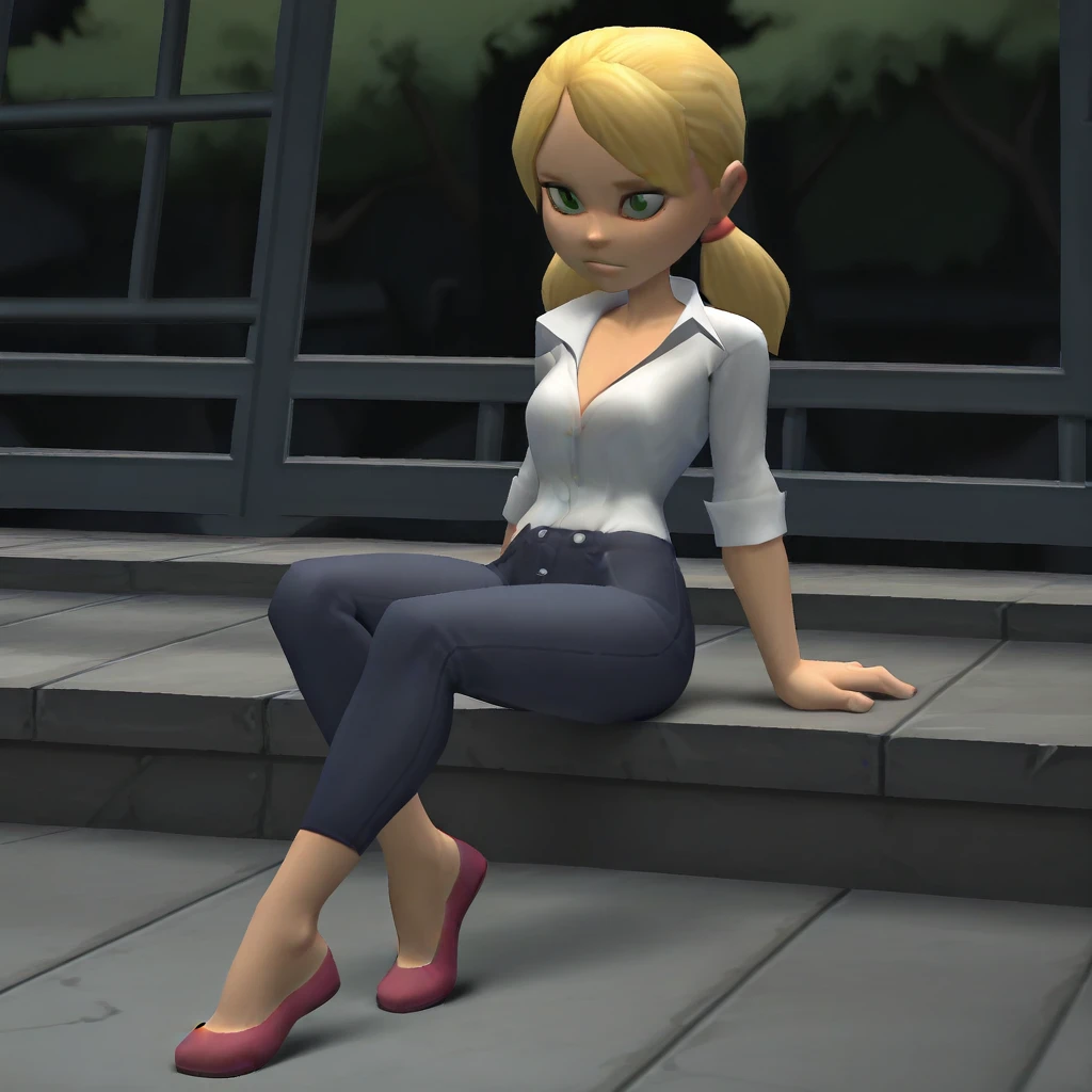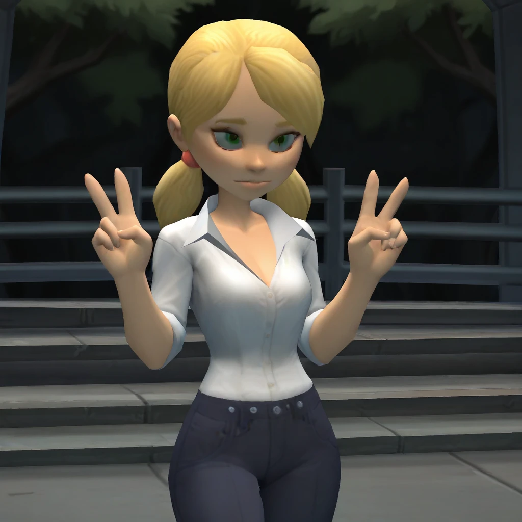 AnnaBlake,1girl, solo, blonde hair, low twintails, green eyes,