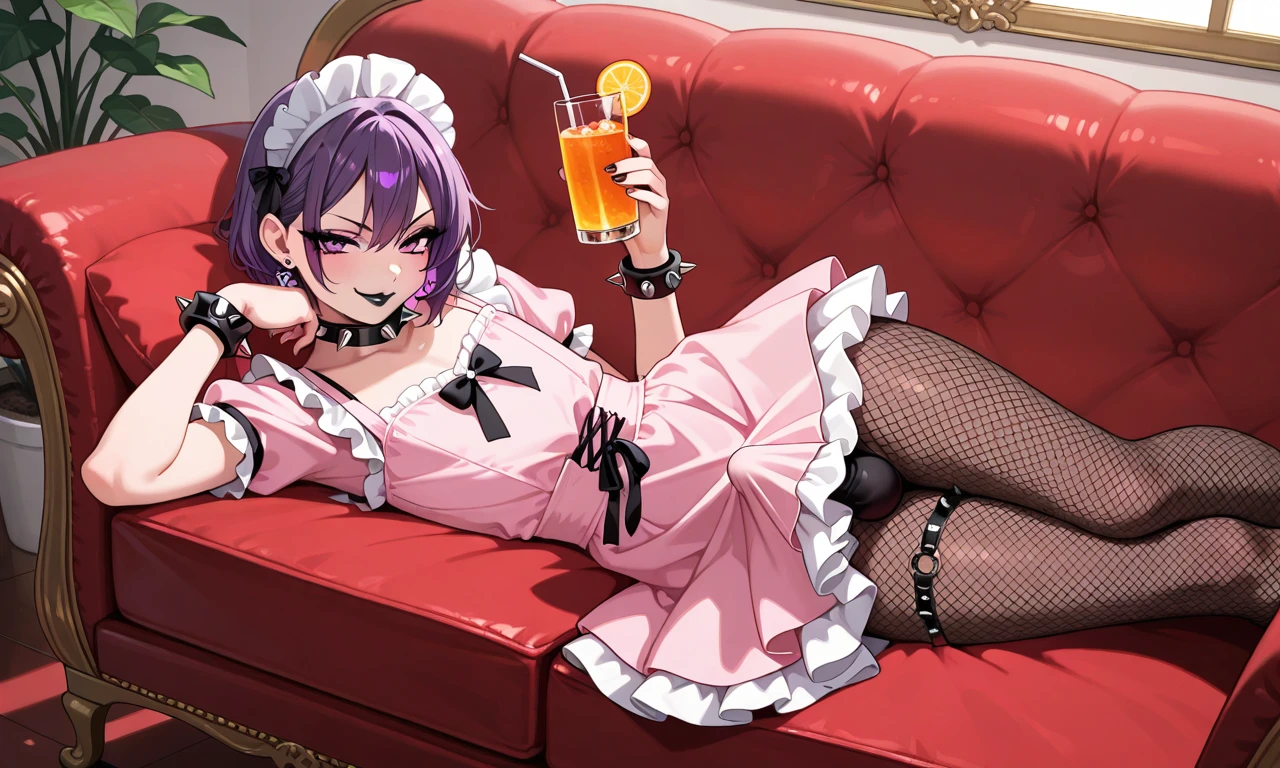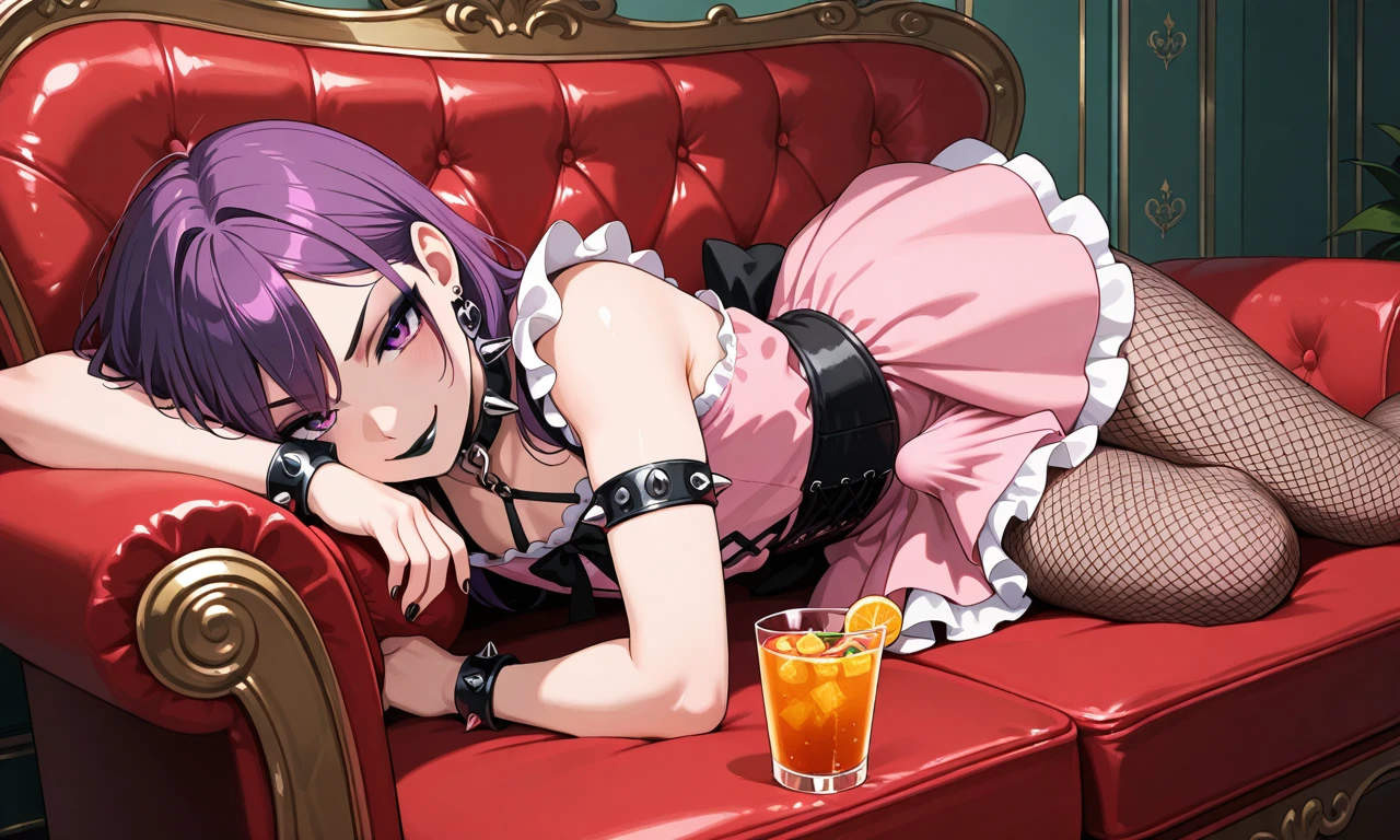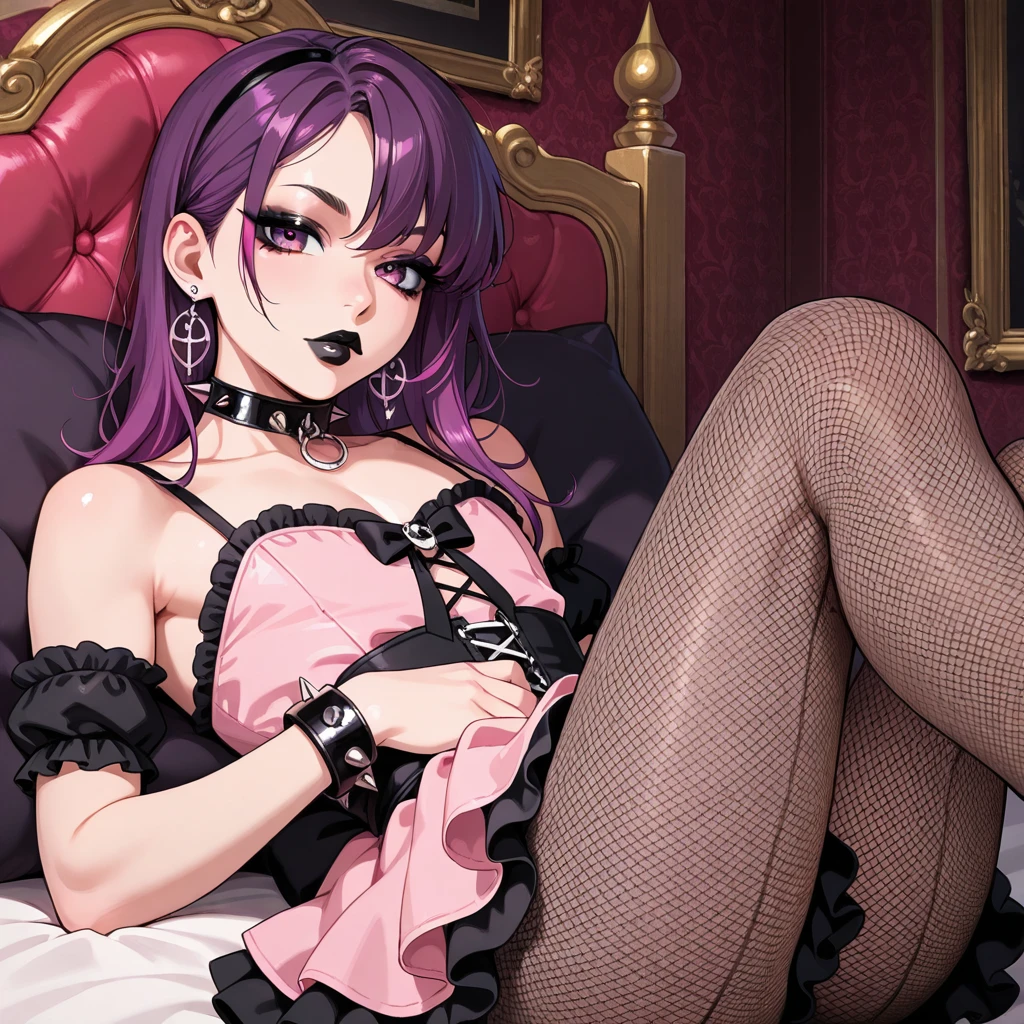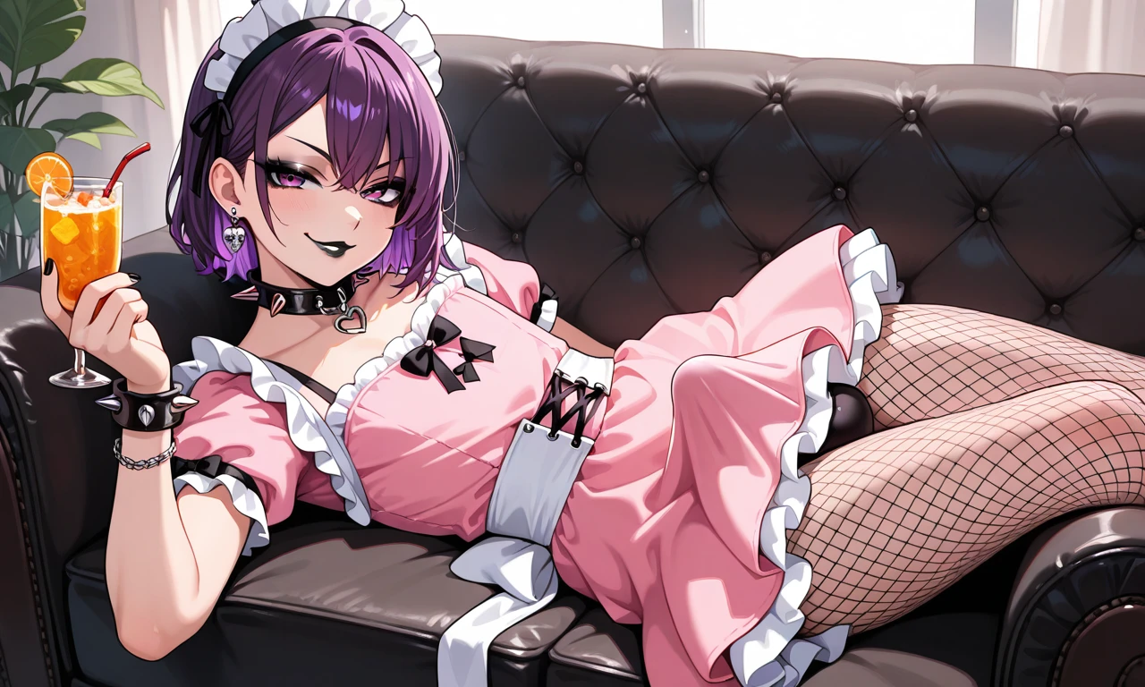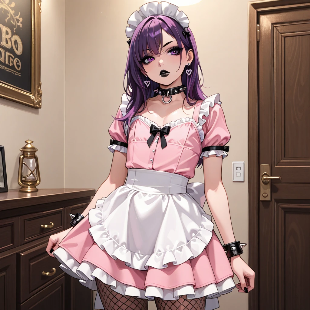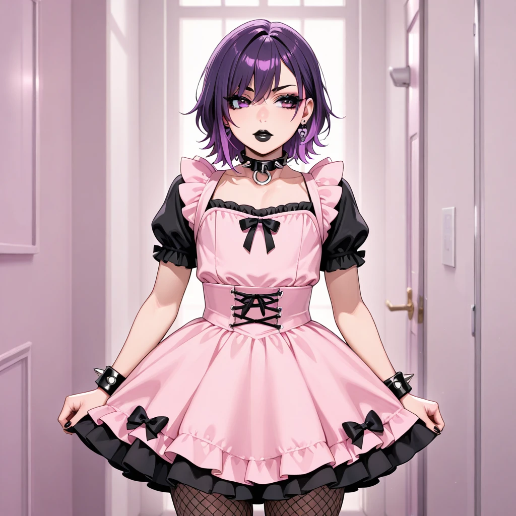 femboy, otoko no ko, gothic, black lips, makeup, purple hair