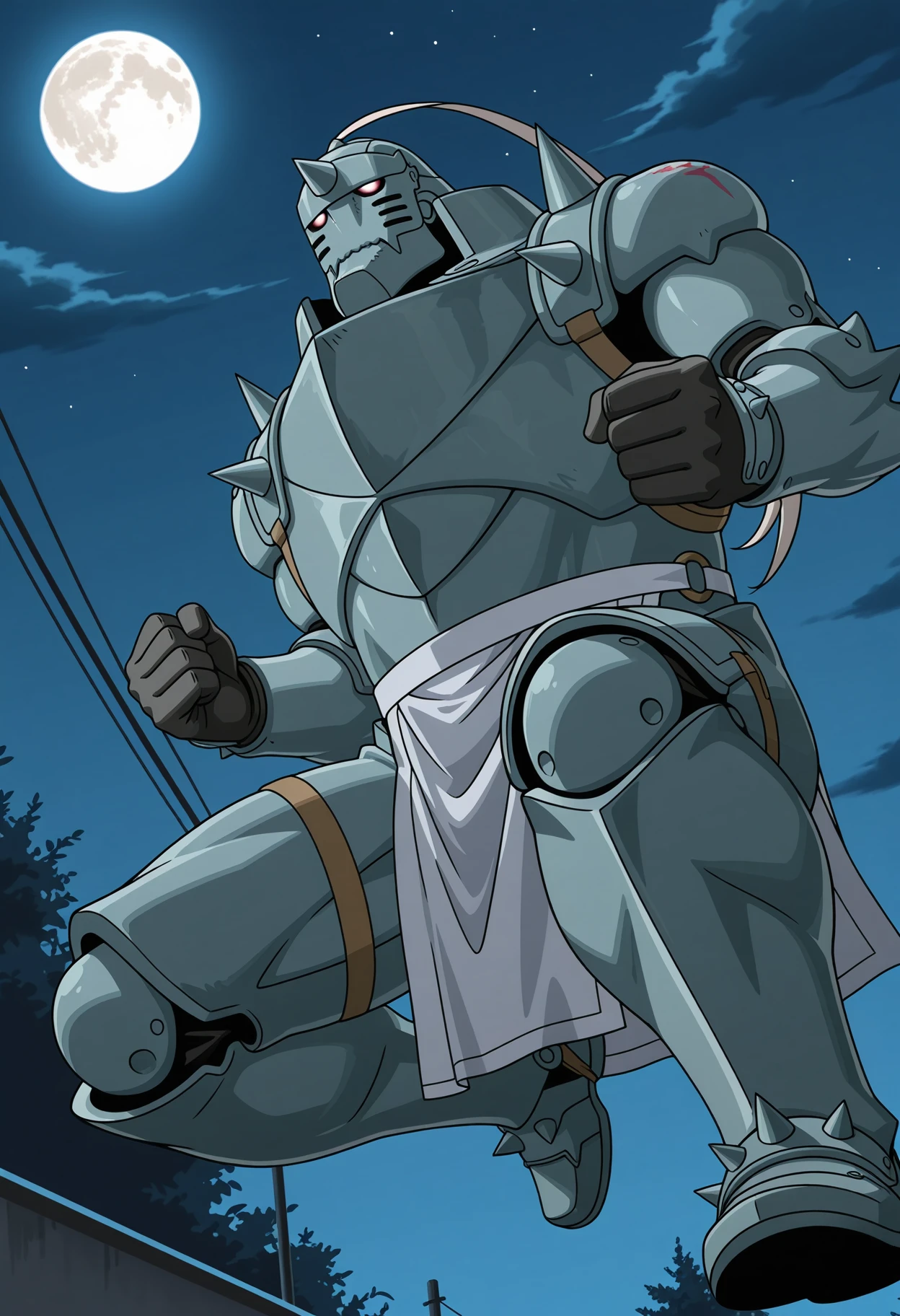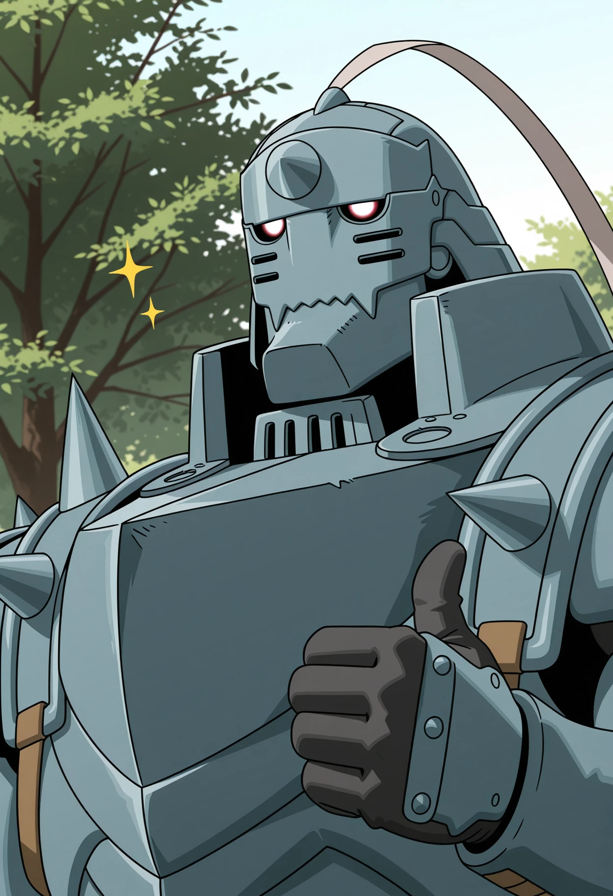Prompts: alphonse_fmab, 1boy, solo, armor, full armor, helmet, shoulder spikes, red eyes, flamel symbol, pelvic curtain, ahoge