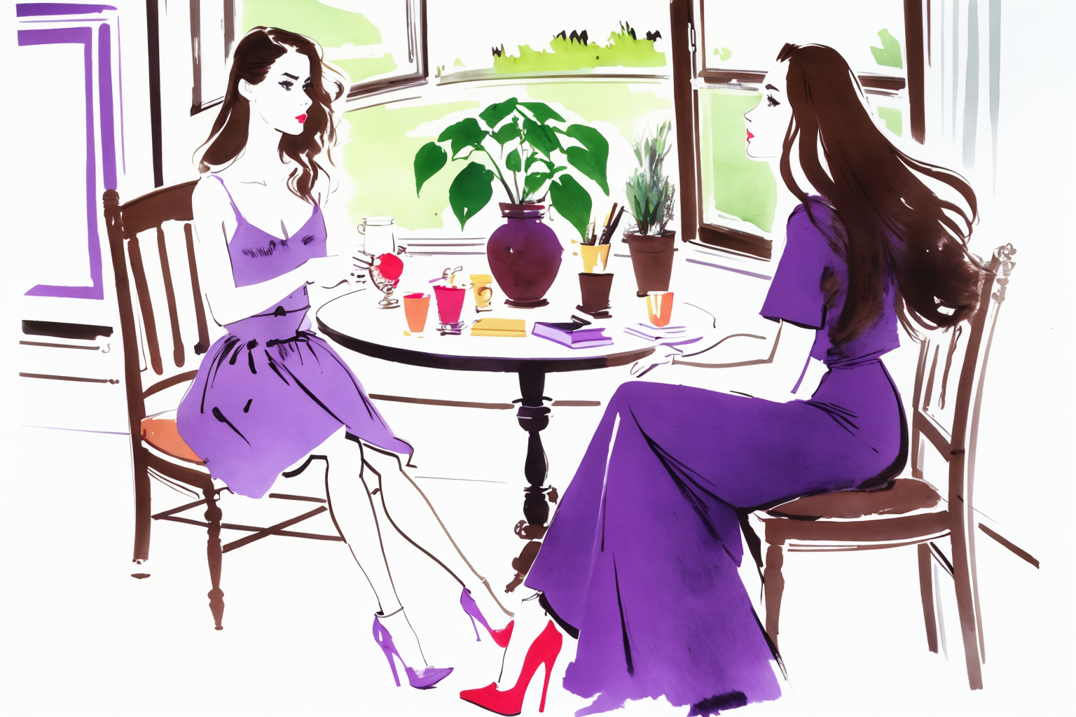 Fashion watercolor style, trained with the artworks of Jacqueline bissett.