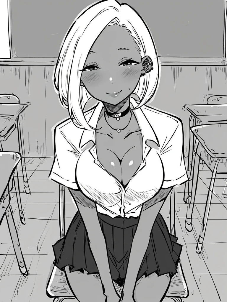 anzai maki, medium hair, asymmetrical hair, dark-skinned female,