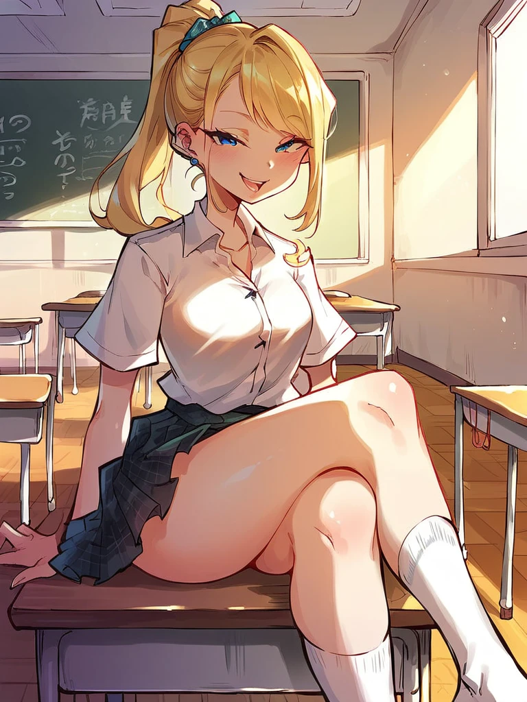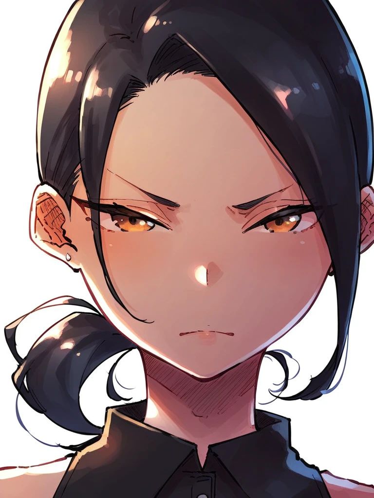 Chie: shibata chie, black hair, low ponytail, earrings,