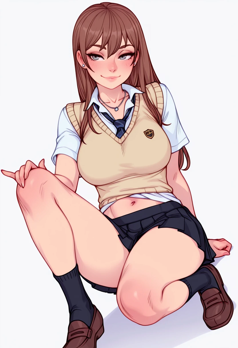 necktie,school uniform,black cardigan, white shirt,pleated skirt,loafers,Explanation and notes below👇