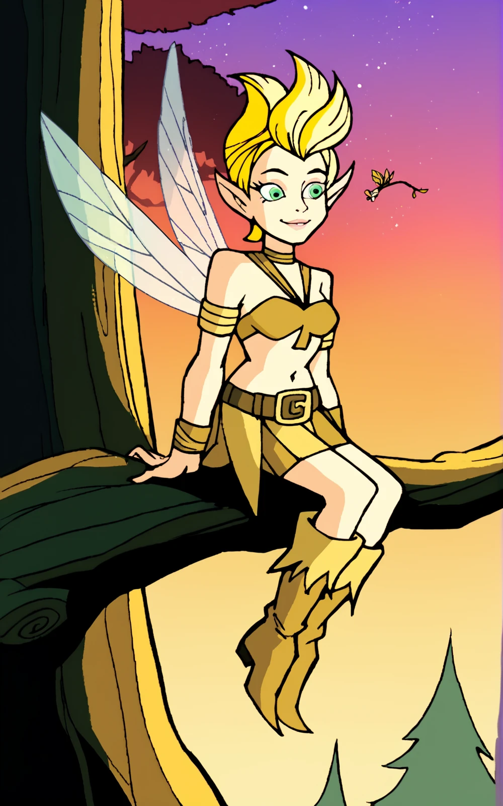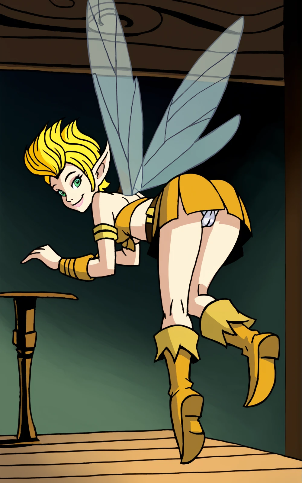 Reinforcement Tags: short hair, blonde hair, green eyes, wings, pointy ears, fairy wings, fairy