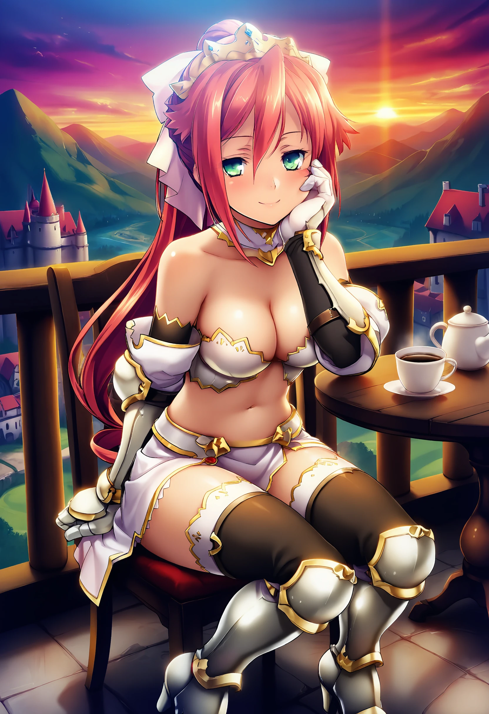 Recommend Prompts (clothing): armor,gauntlets, gloves, skirt,black thighhighs, armored boots, high heels,