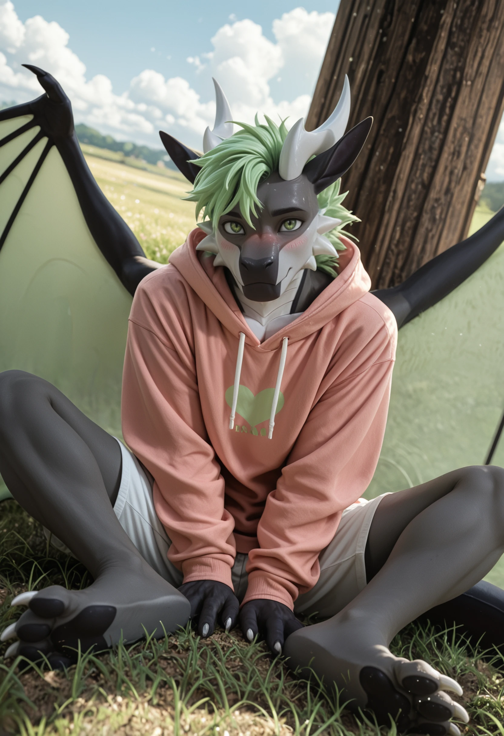 jas0n_dem0nium, anthro, furry, male, furry male, male focus, dragon, horns, 1boy, solo, tail, green hair, dragon boy, wings, bara, green eyes, claws, animal earsworst quality, old, low quality, low res, signature, text, logo, 1girl, female, breasts, monochrome, illustration, sketch, cartoon, anime, flat color, outline, human, human hands, humanoid penisDescription