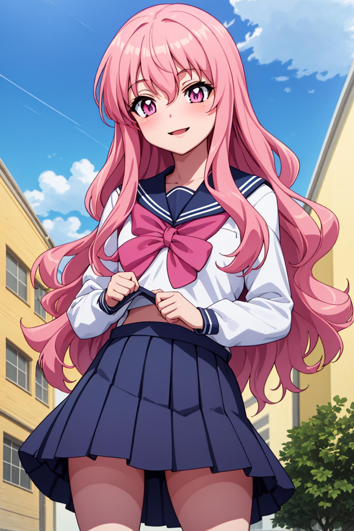 school uniform, zettai ryouiki, long hair, skirt, serafuku,