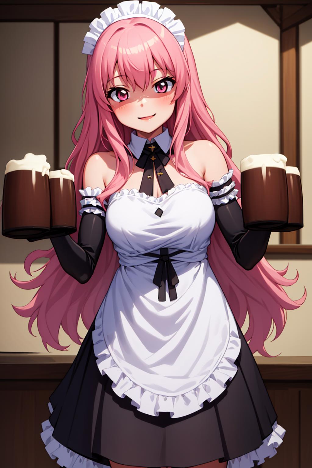 maid,cup, beer mug,elbow gloves,waitless,
