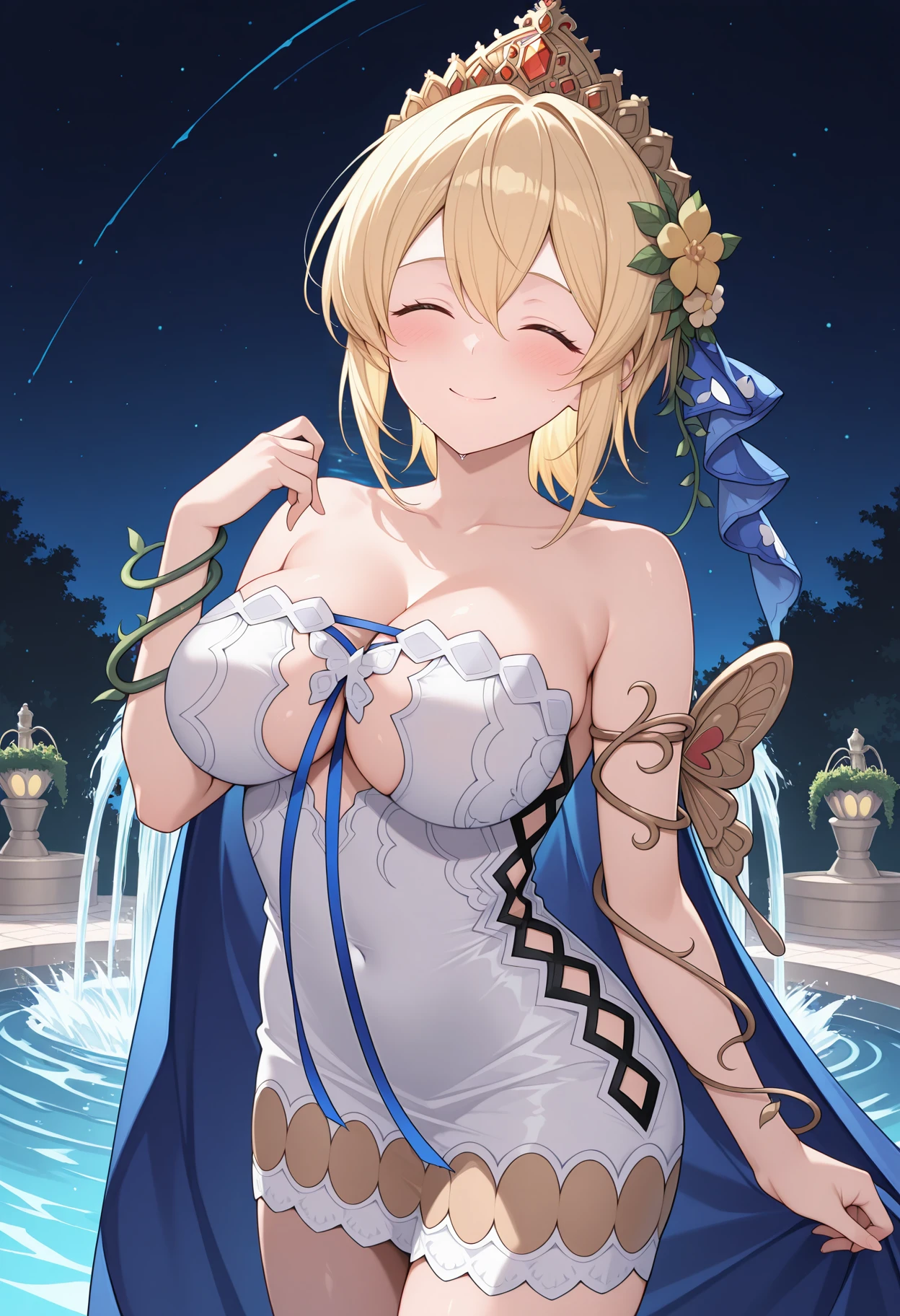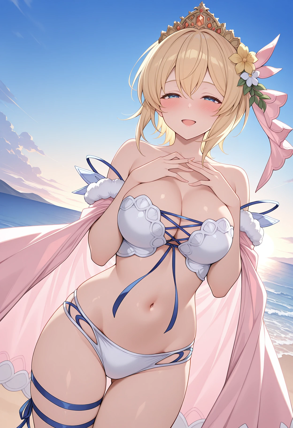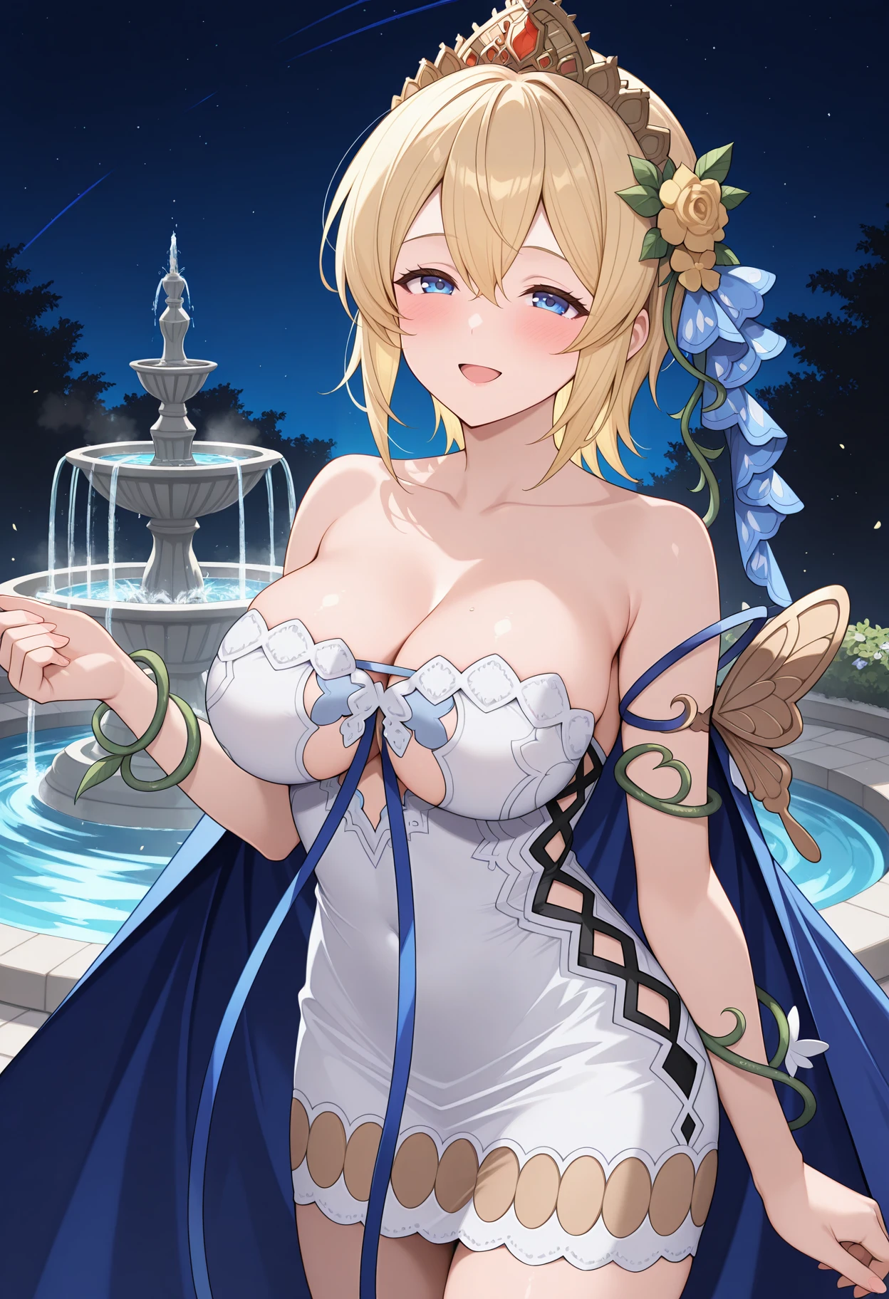 gbfeuro, blonde hair, short hair, blue eyes, tiara, large breasts,