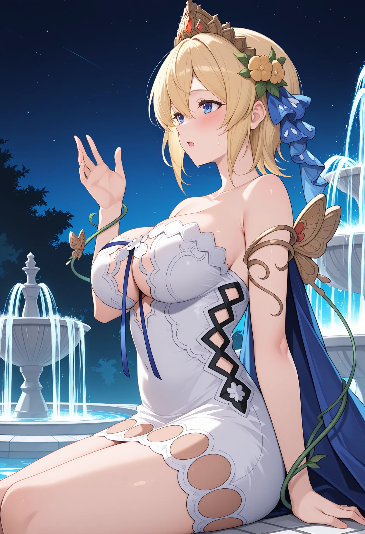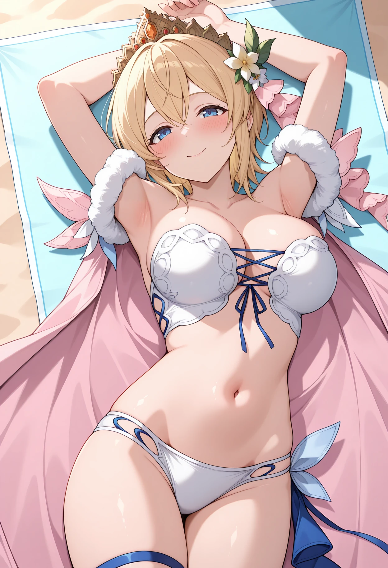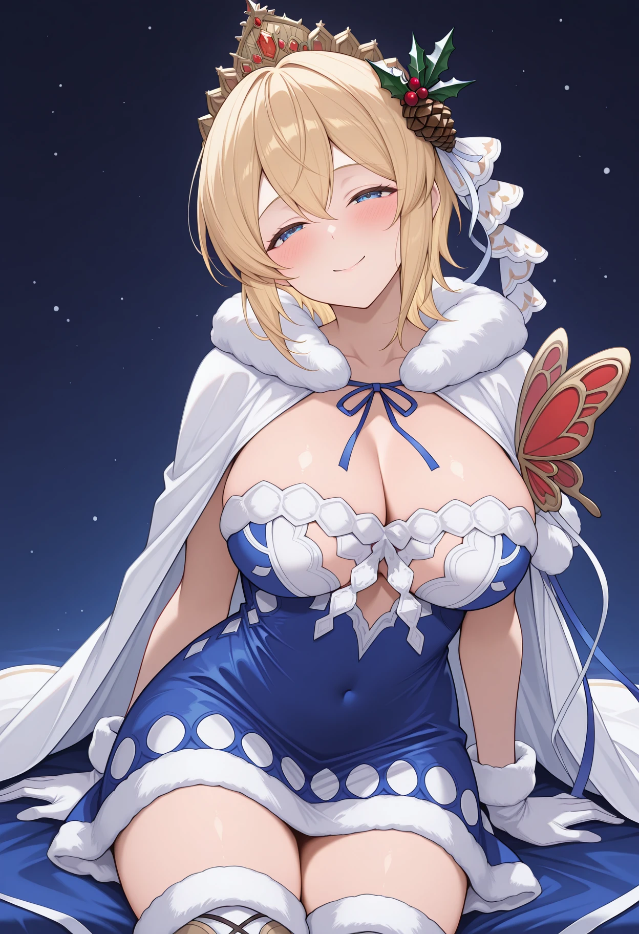 gbfeuro, blonde hair, short hair, blue eyes, tiara, large breasts,