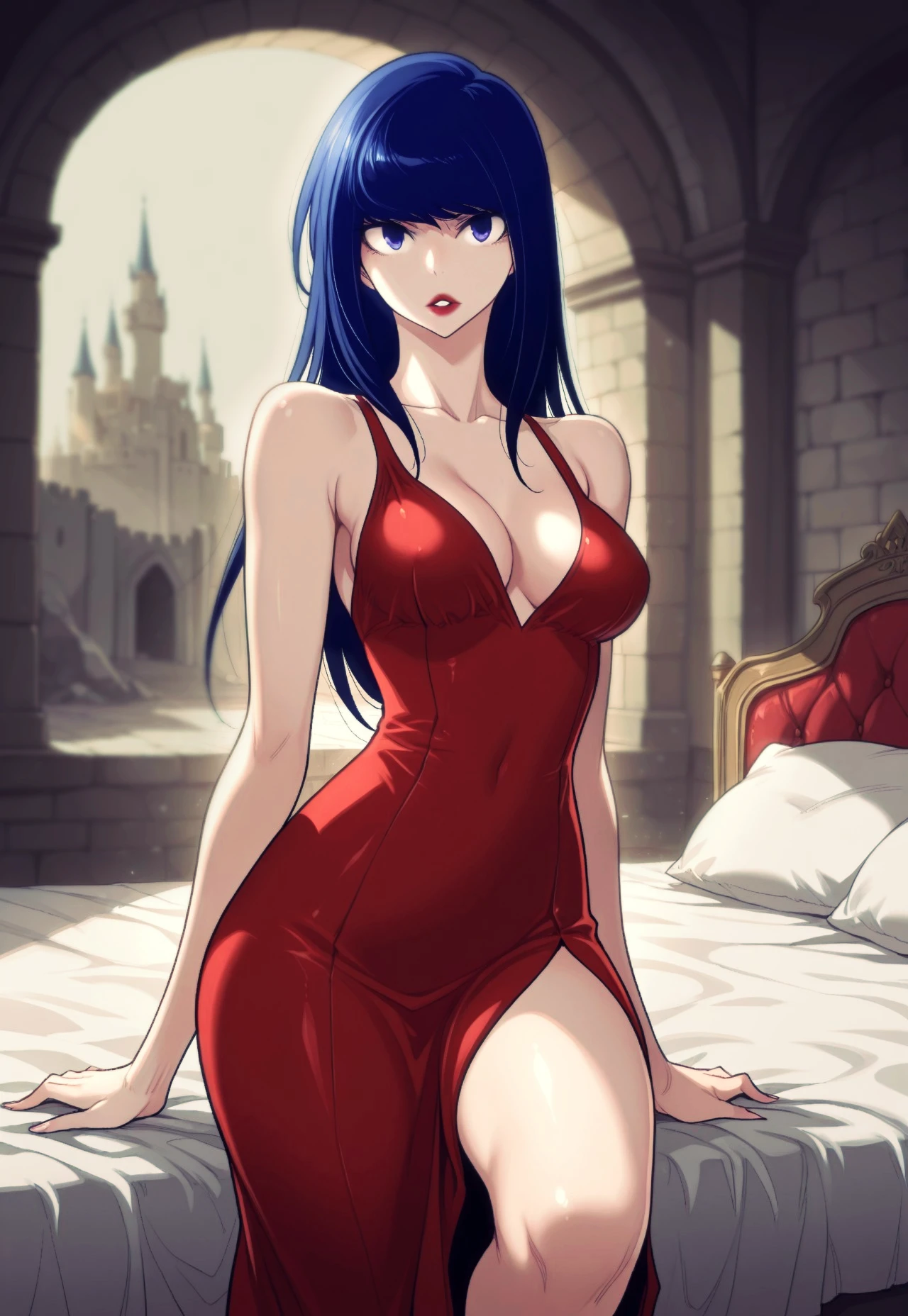 red dress, cleavage, bare shoulders, clothing cutout, cleavage cutout, shoulder cutout