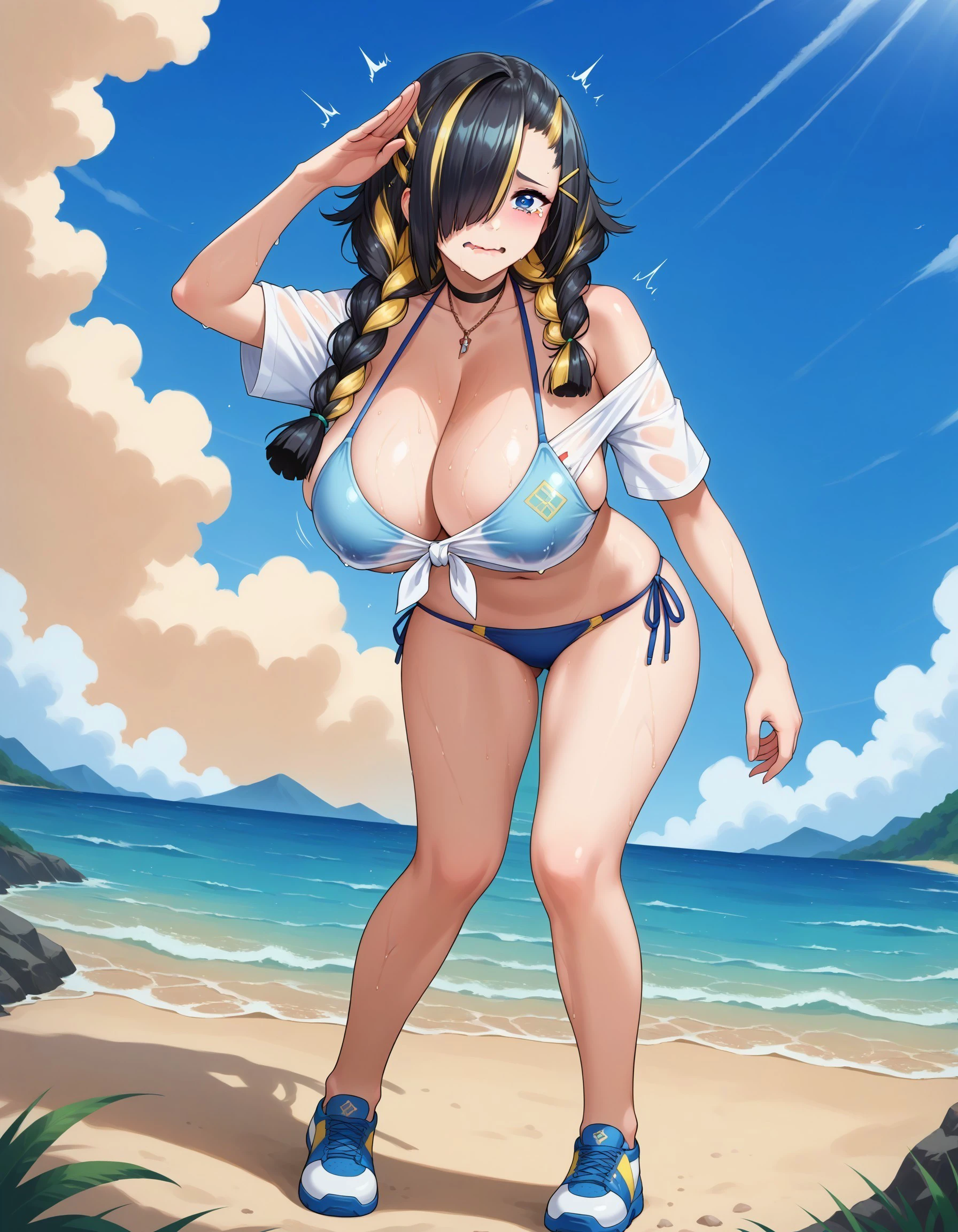 - Her hair works perfectly without it but you can add "blonde hair" to better get the streaks if you want.