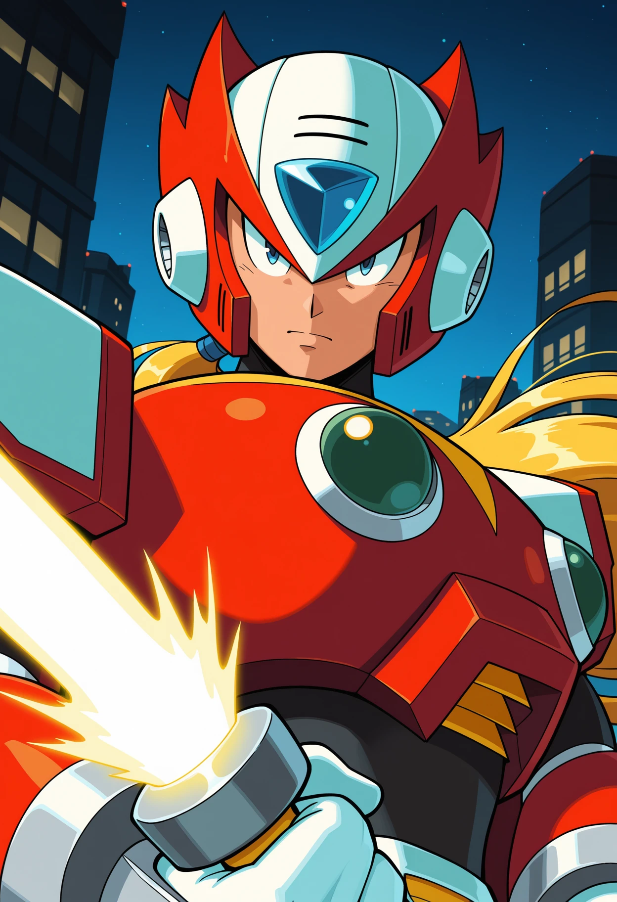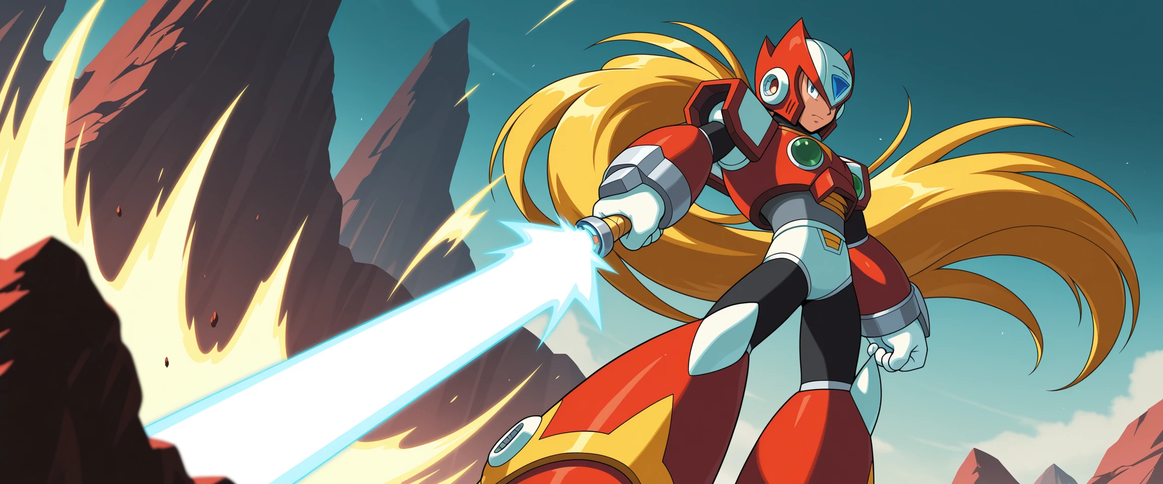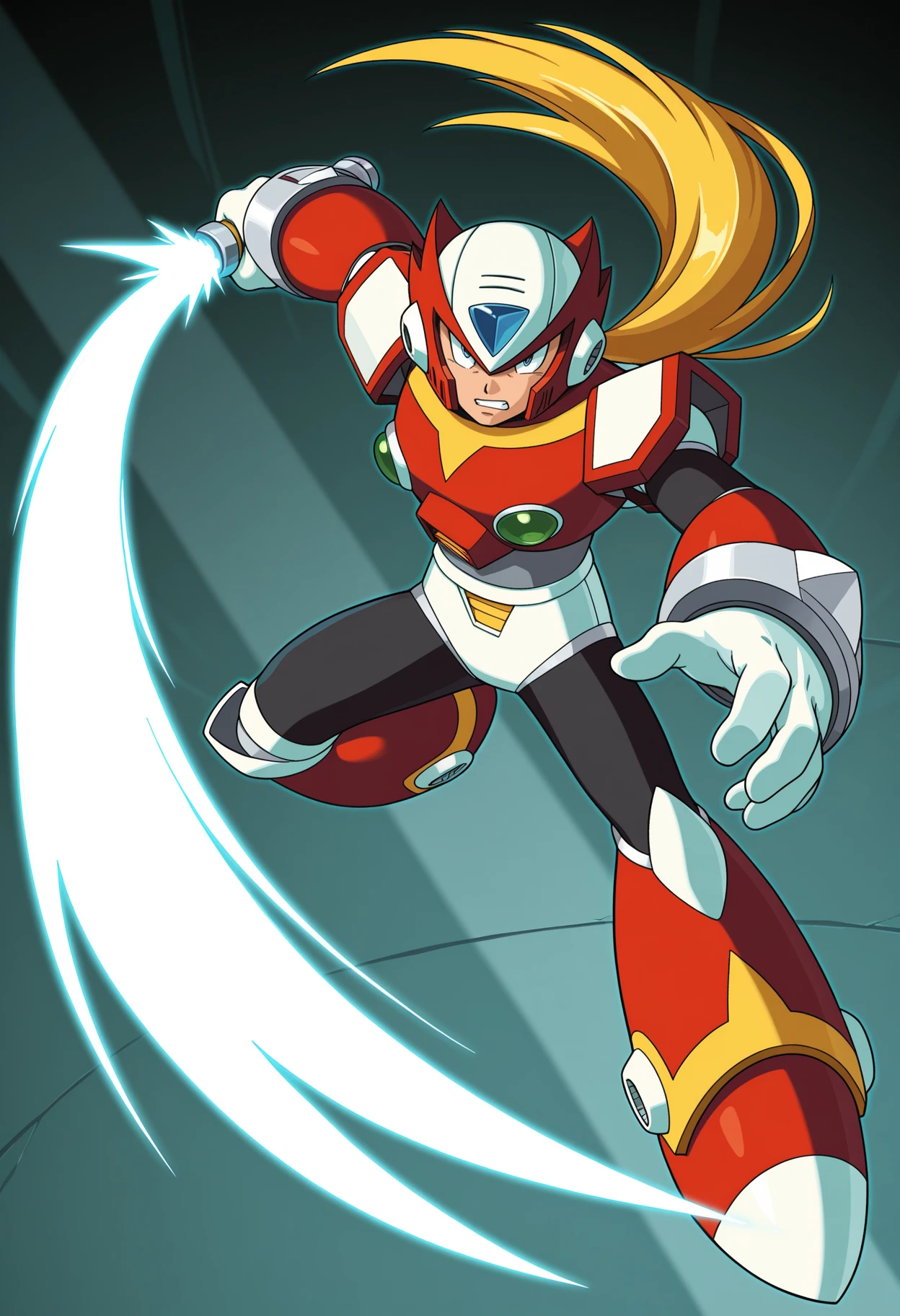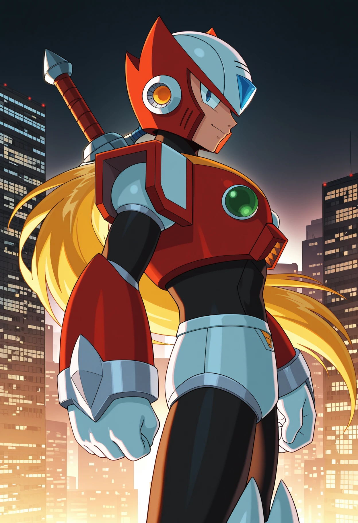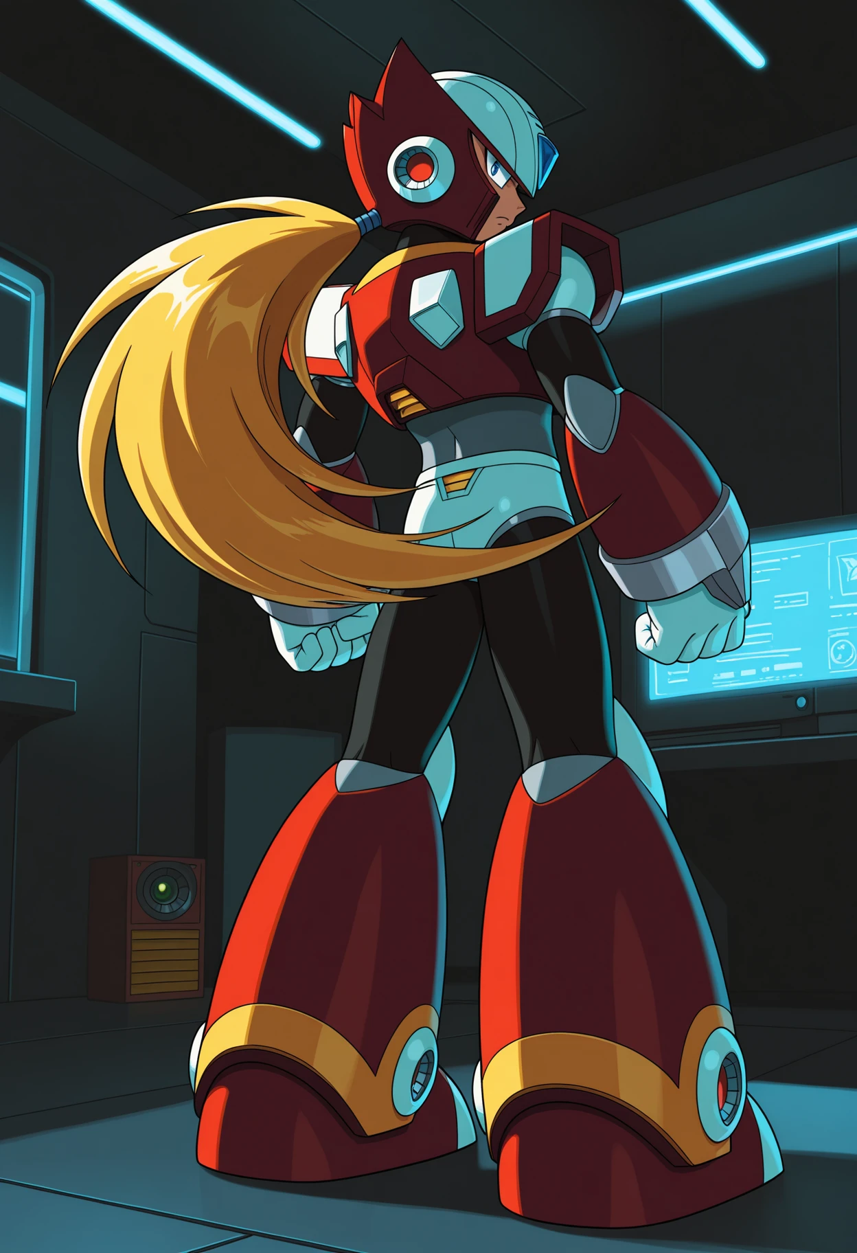 2ERO, male focus, blue eyes, helmet, blonde hair, ponytail, armor, android, robot, holding sword,