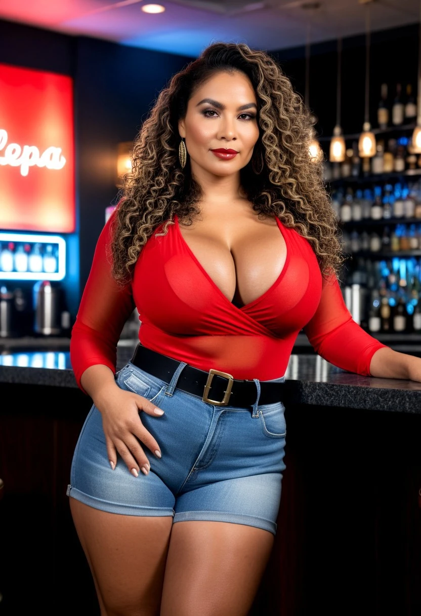 (ultra detailed),(ultra detailed), (((Masterpiece))), (((realistic)), Masterpiece (highest quality), ((photorealistic: 1.2)), sexy chubby MILF Filipina woman, huge saggy tits, long curly hair, thick thighs, wide hips, seductive,