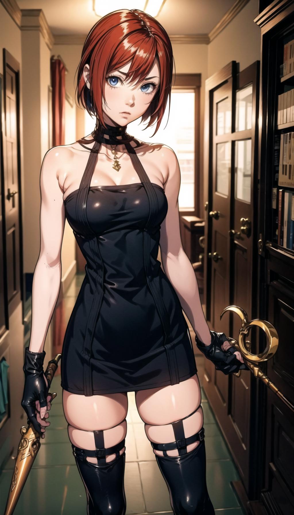 KH2: long hair, short pink dress, zipper