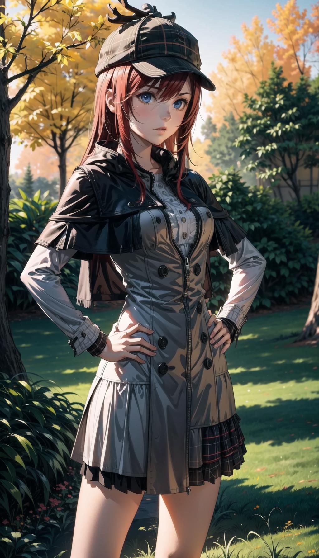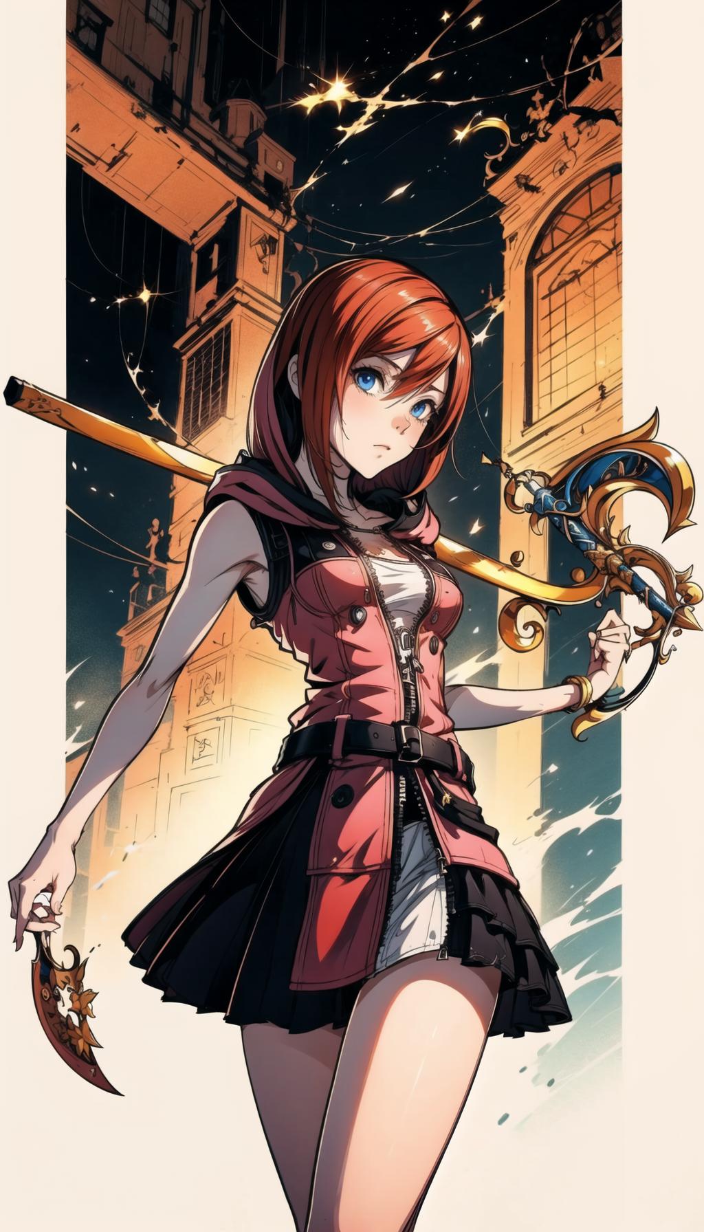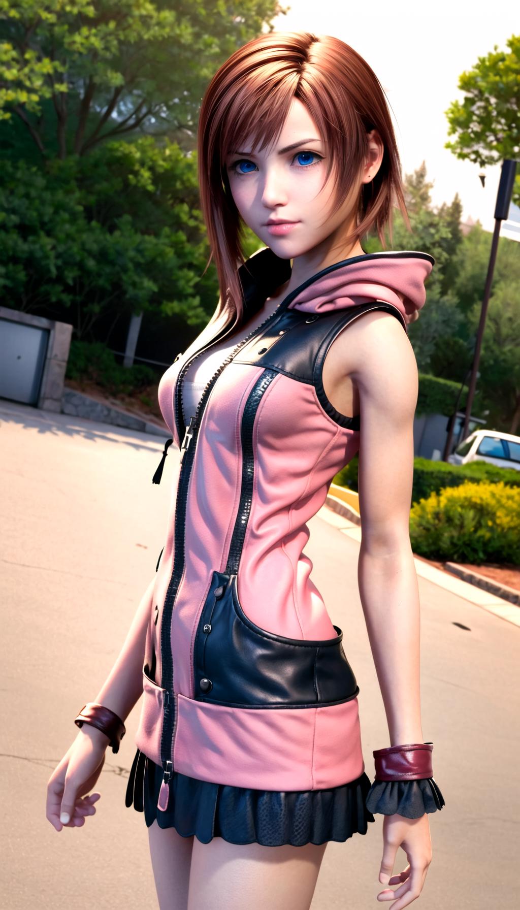 KH3: short hair, pink hoodie, zipper, black skirt