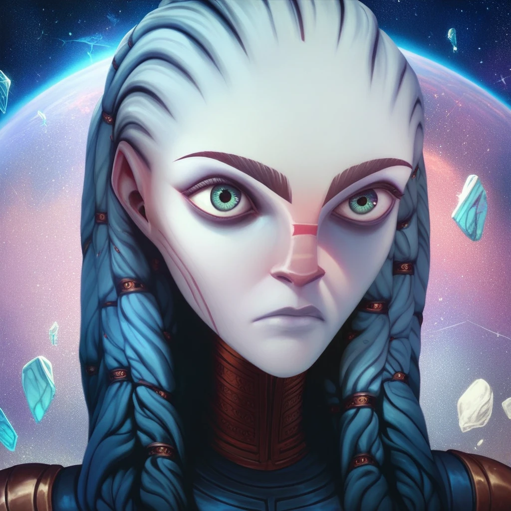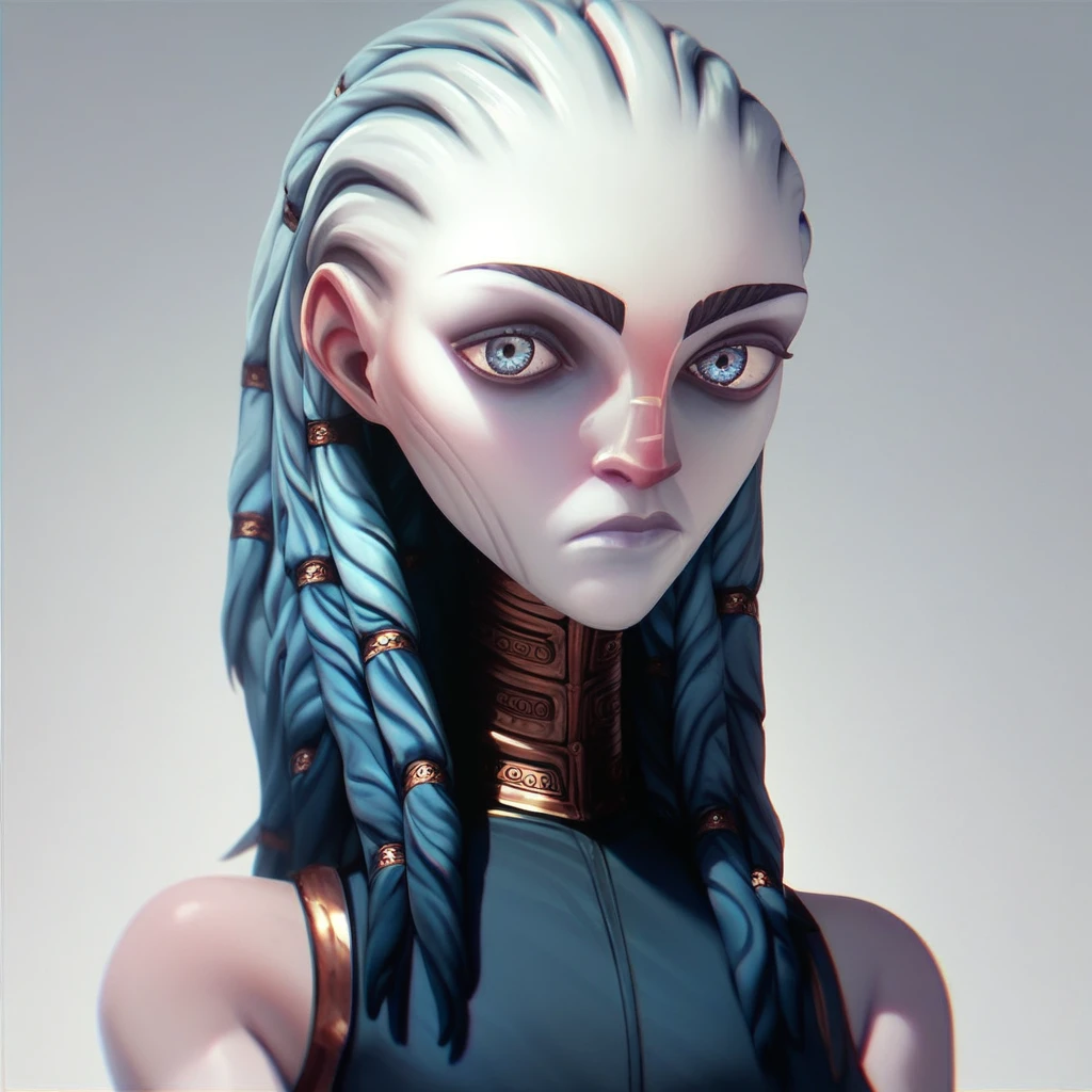 gwyndala, alien, 1girl, solo, tendril hair, long hair, upper body, braid,