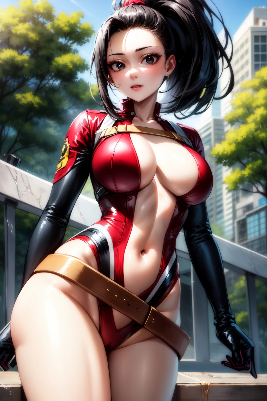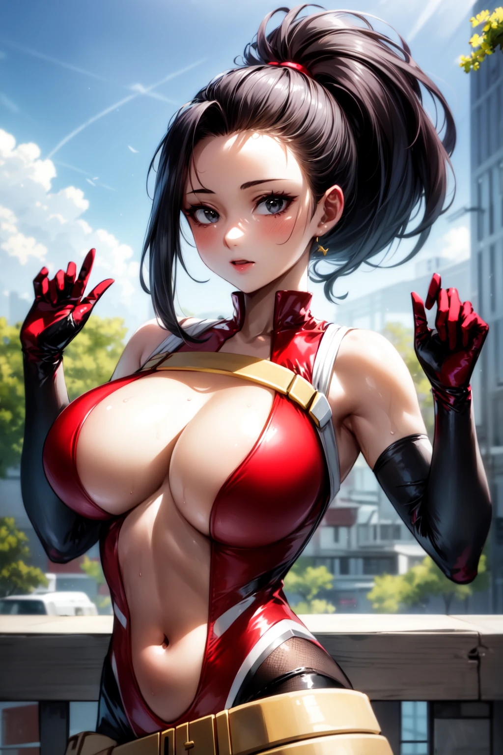 YaoyorozuMomo_NDV, 1girl, black eyes, black hair, large breasts, long hair, ponytail, high ponytailBest weight: 0.6-0.8