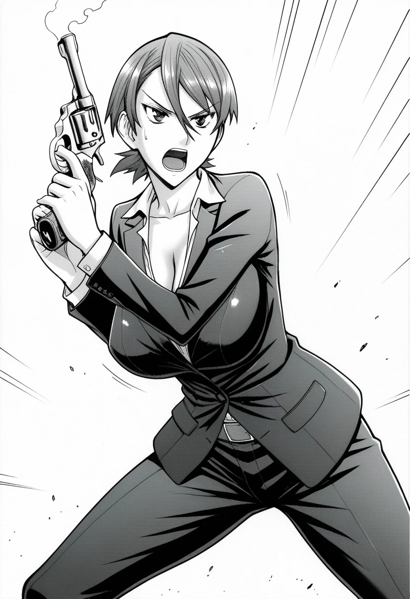 gun, short revolver, police badgeArt style