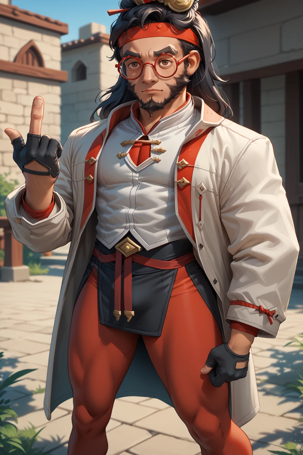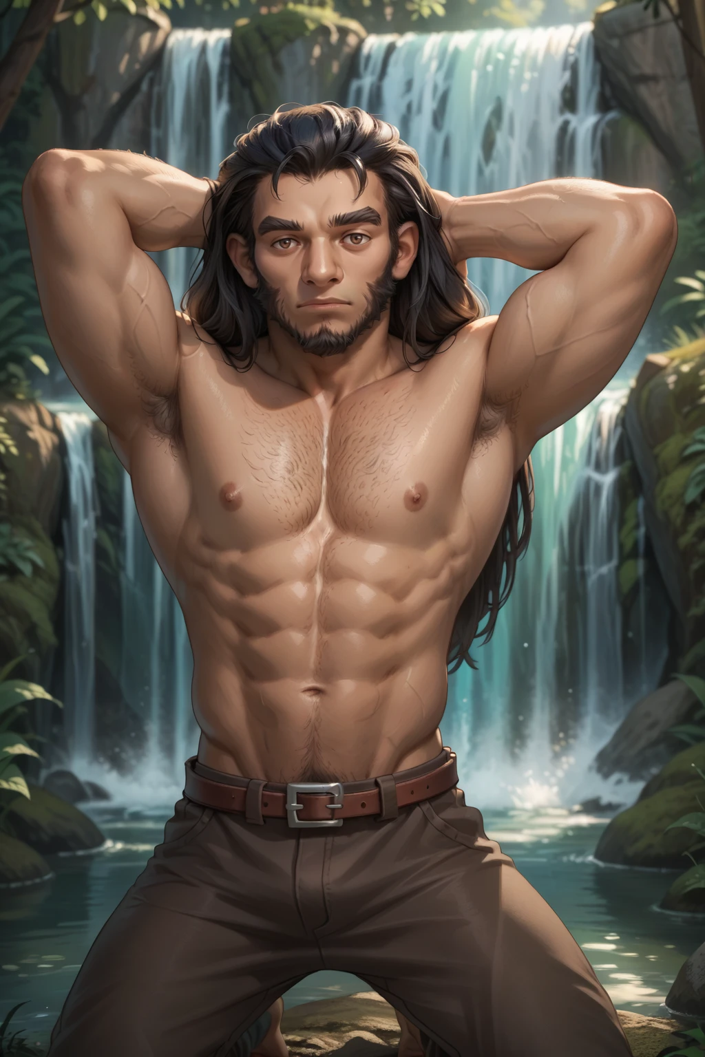Main prompts: NSAaditPortia, male focus, long hair, black hair, facial hair, brown eyes, thick eyebrows