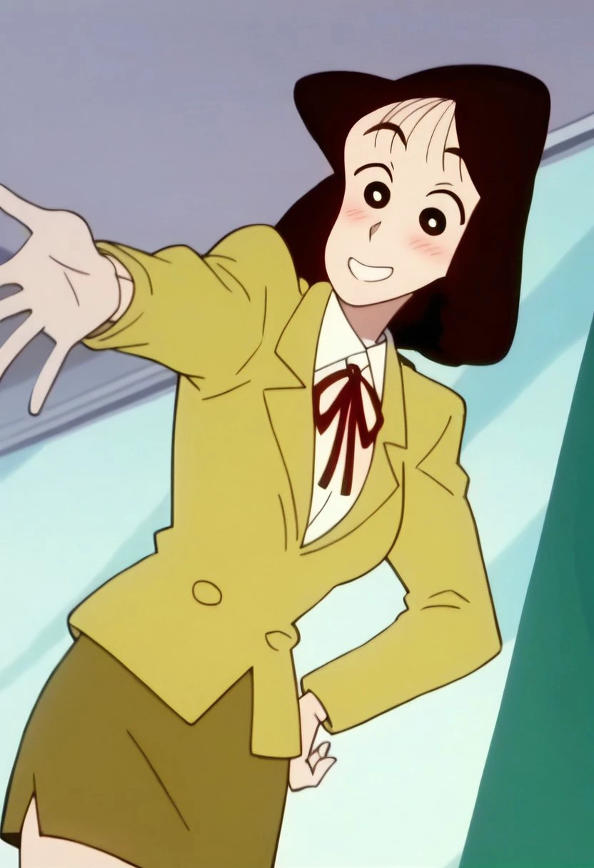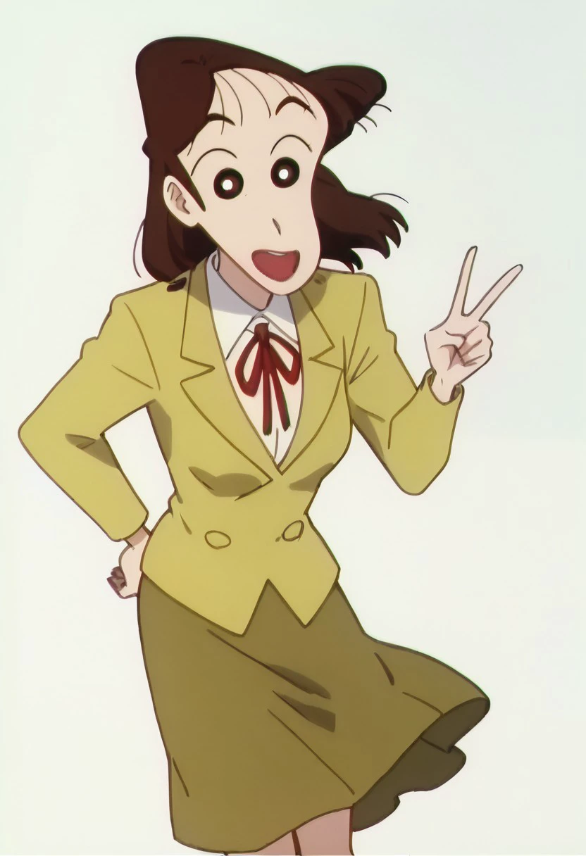shirt, collared shirt, white shirt, jacket, brown jacket,skirt, brown skirt, pencil skirt, ribbon, neck ribbon,