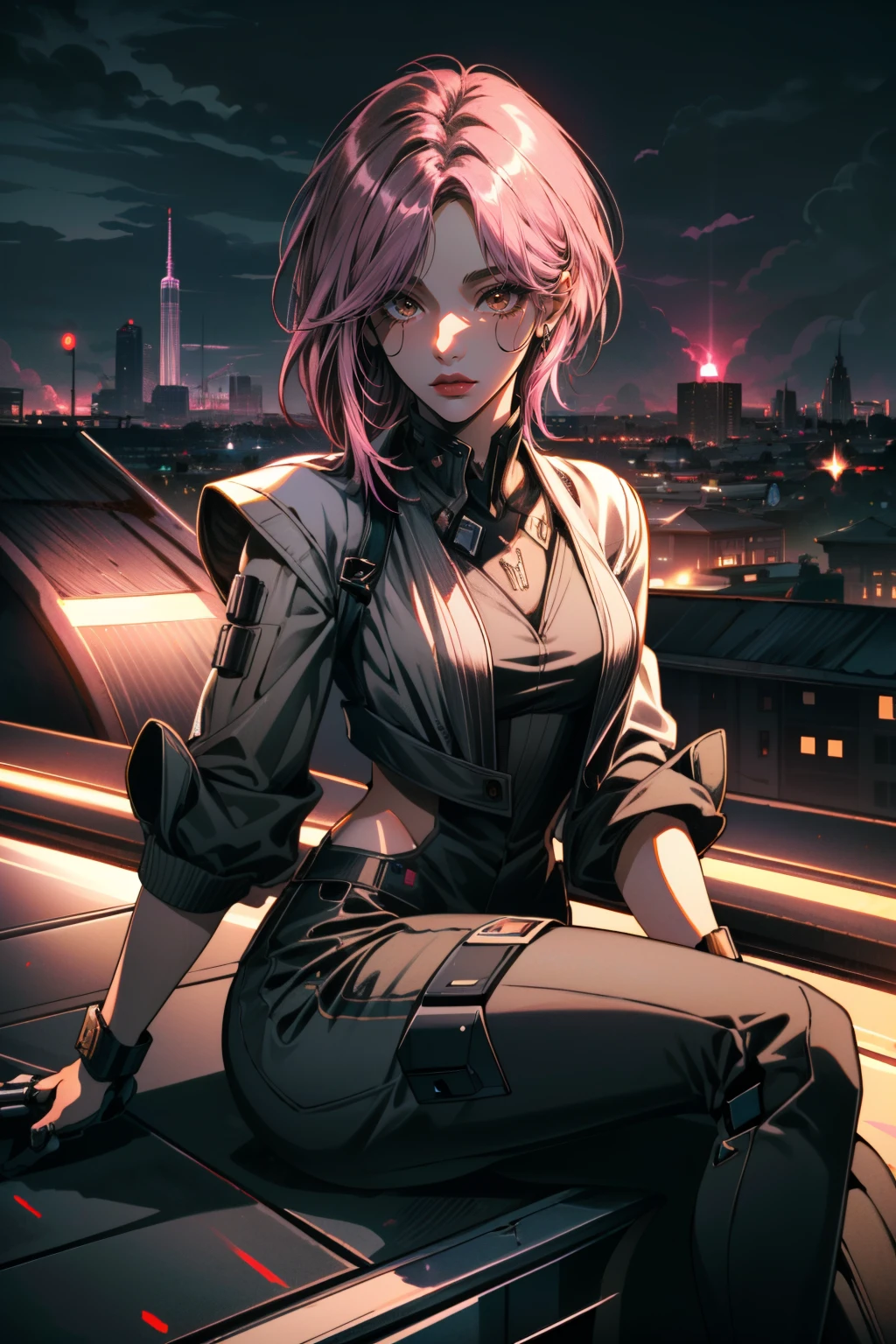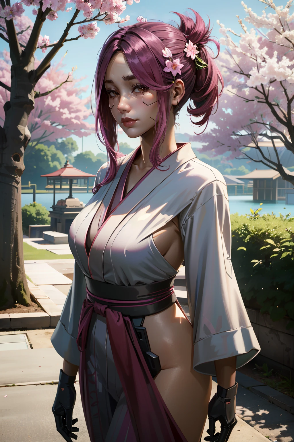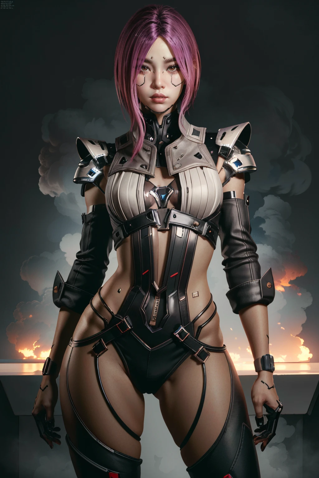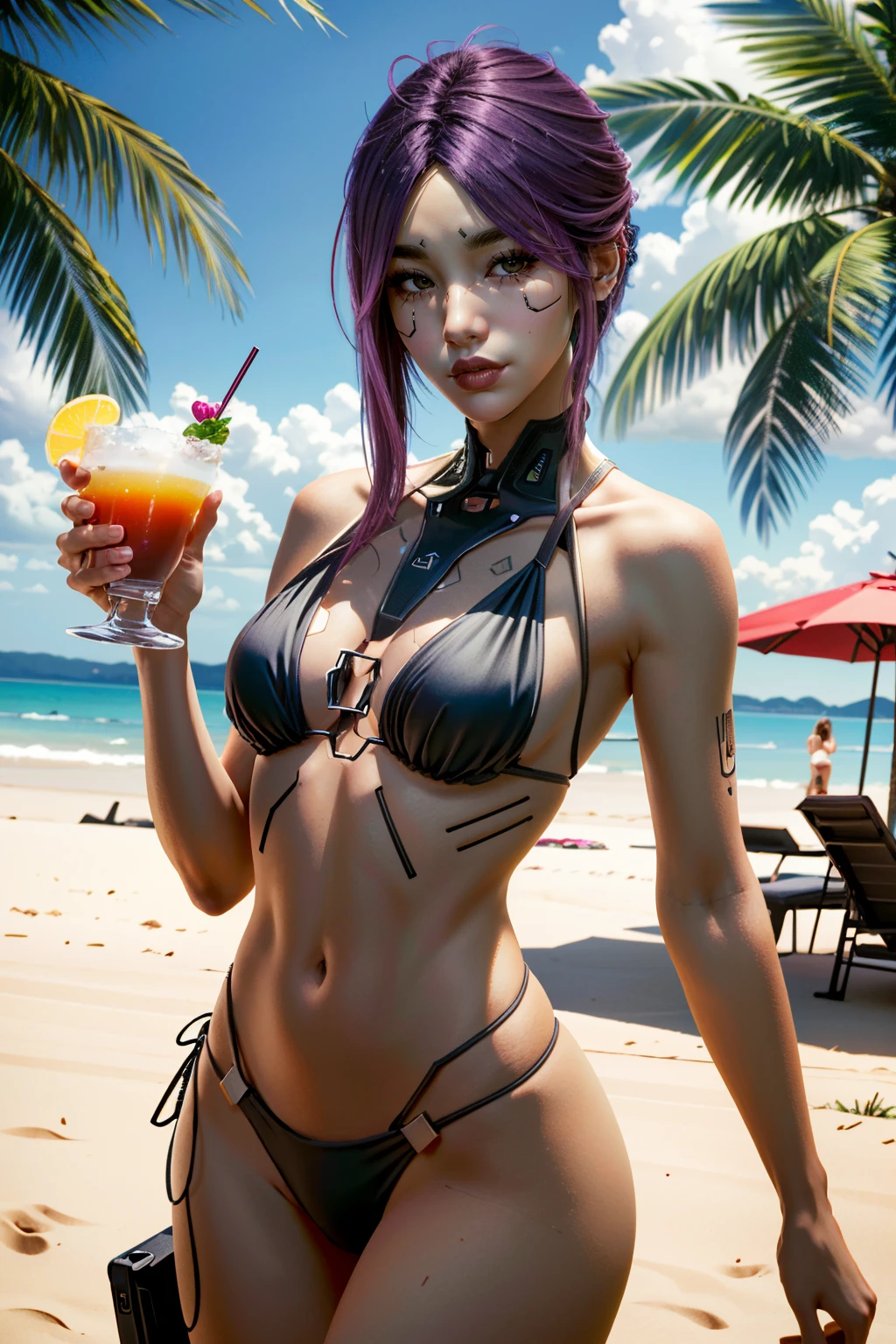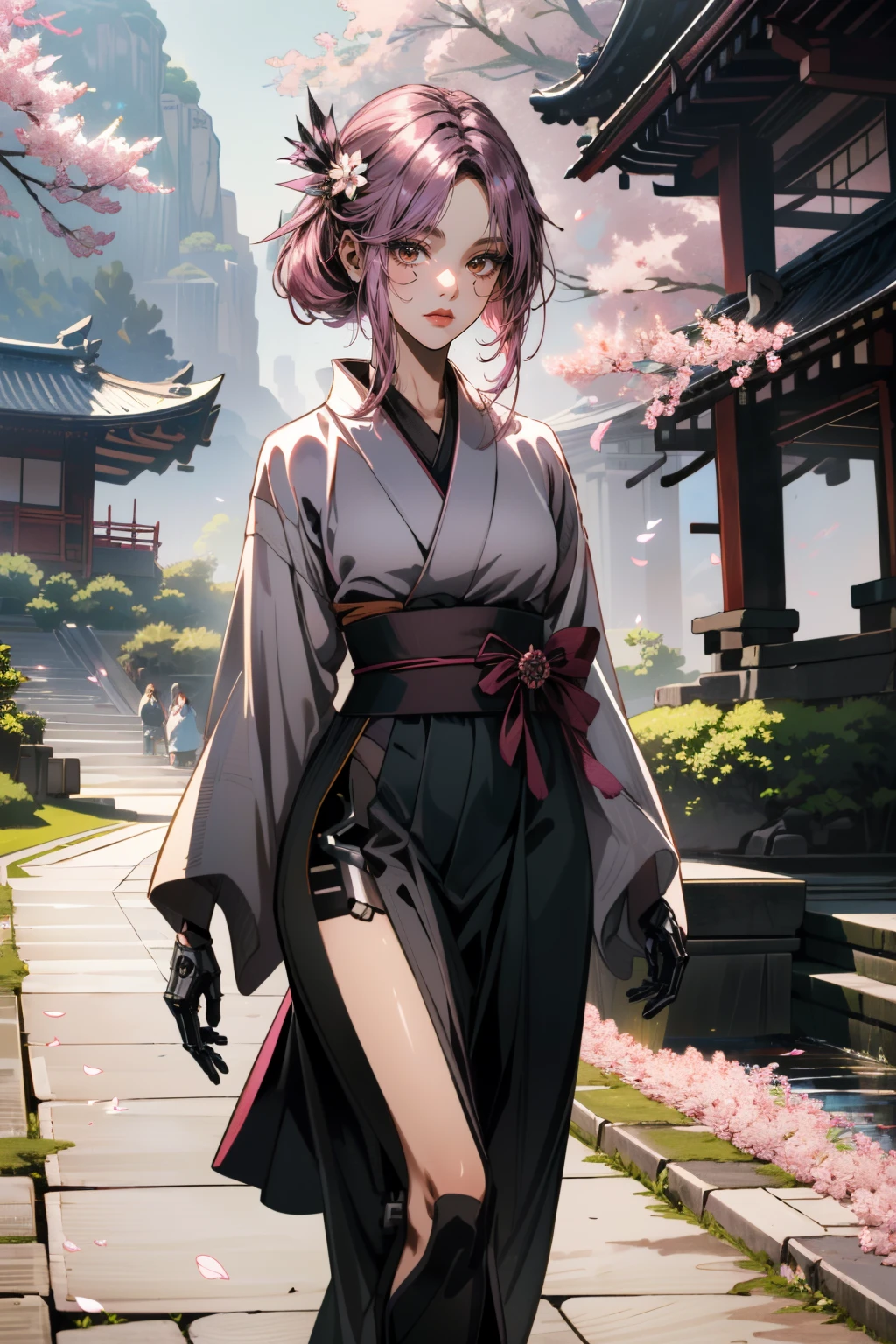 CyberSongbird, 1girl, mechanical parts, purple hair, asymmetrical hair