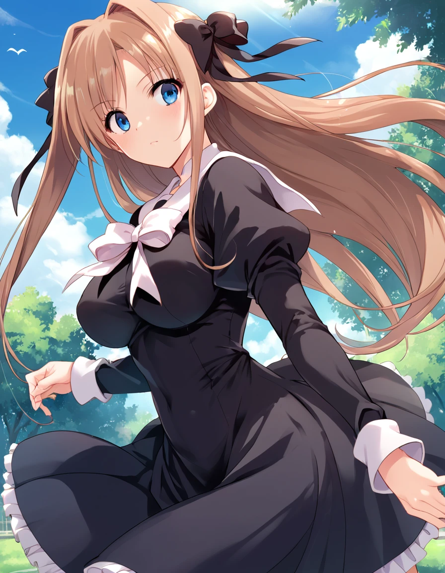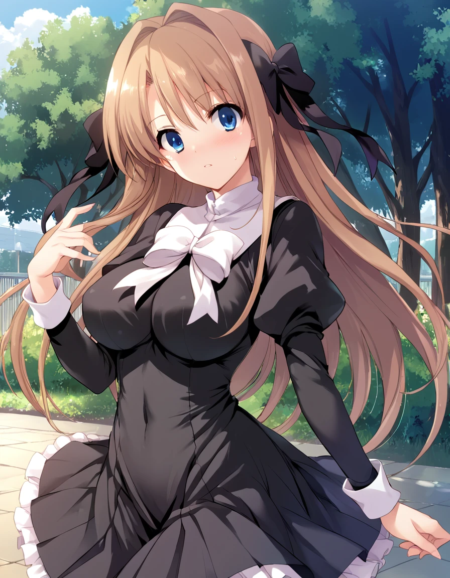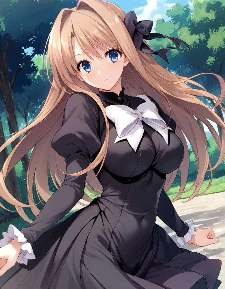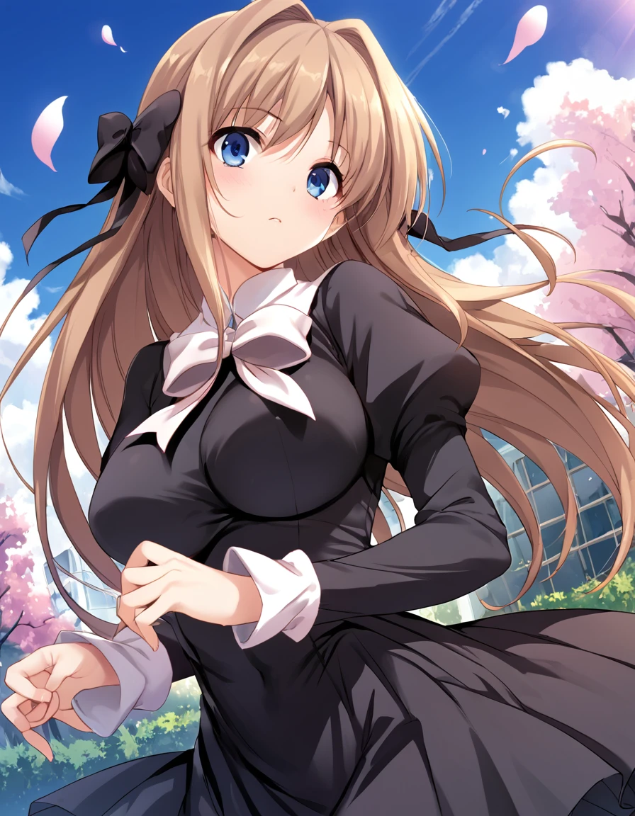 long sleeves, dress, bow, ribbon, school uniform, puffy sleeves, black dress