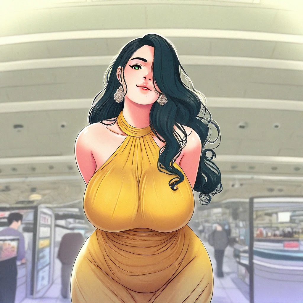 1. ((super sexy sleeveless halter-neck yellow dress, sexy long-earrings, ))