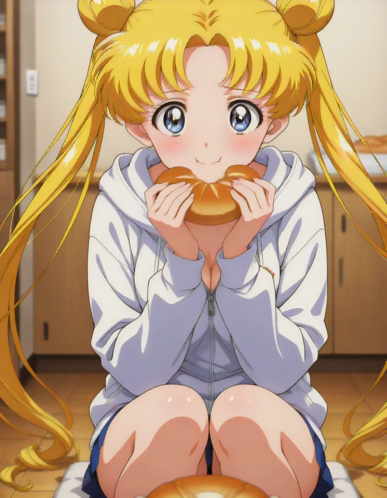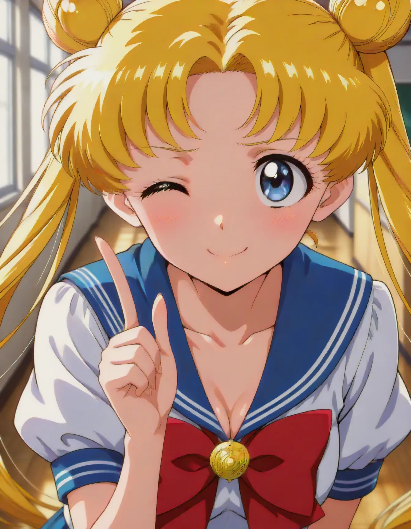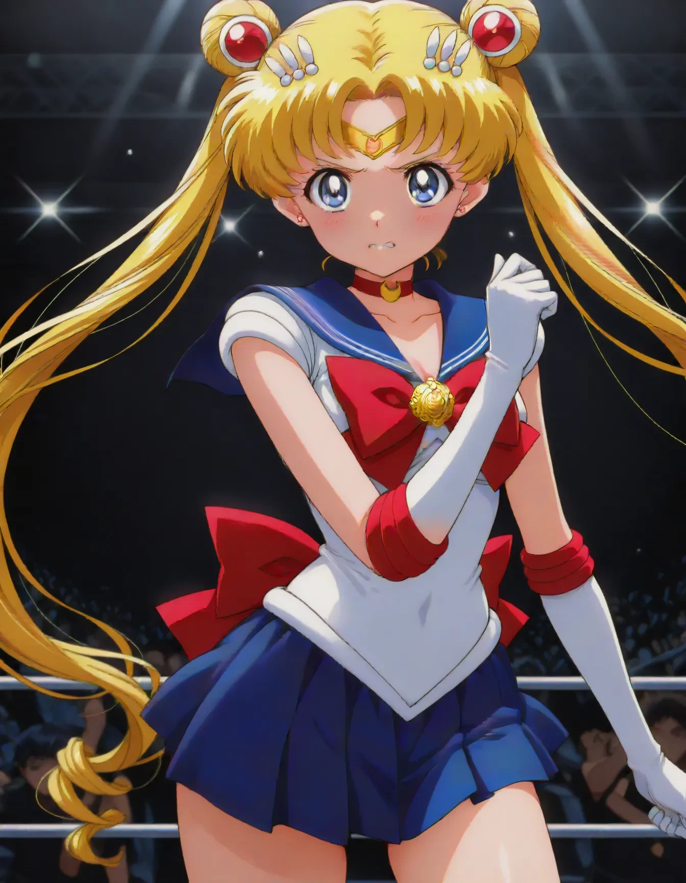 triggerWord: tsukino usagi,1girl,solo,solo focus,blonde hair,blue eyes,double bun,hair bun,long hair,twintails,parted bangs,hair ornament,circlet,back bow,blue sailor collar,blue skirt,bow,brooch,choker,elbow gloves,gloves,jewelry,leotard,magical girl,pleated skirt,red bow,red choker,ribbon,sailor collar,sailor senshi uniform,skirt,white gloves,