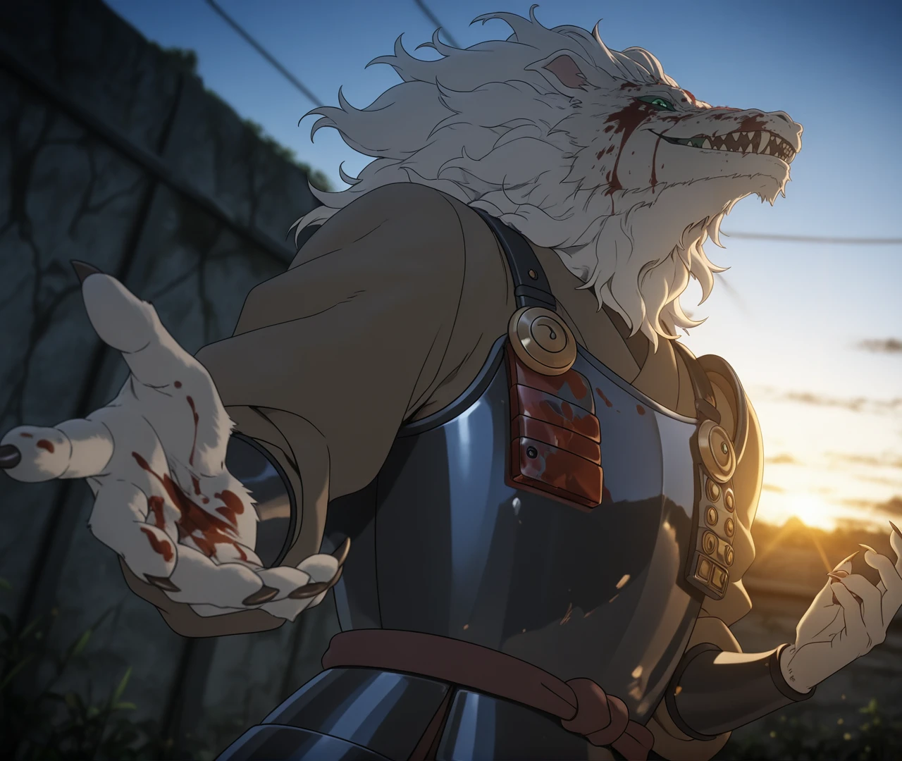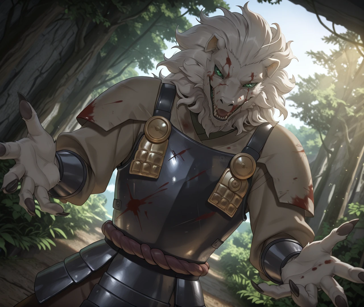 Reinforcement: solo, anthro, male, clothing, hi res, fur, feral, armor