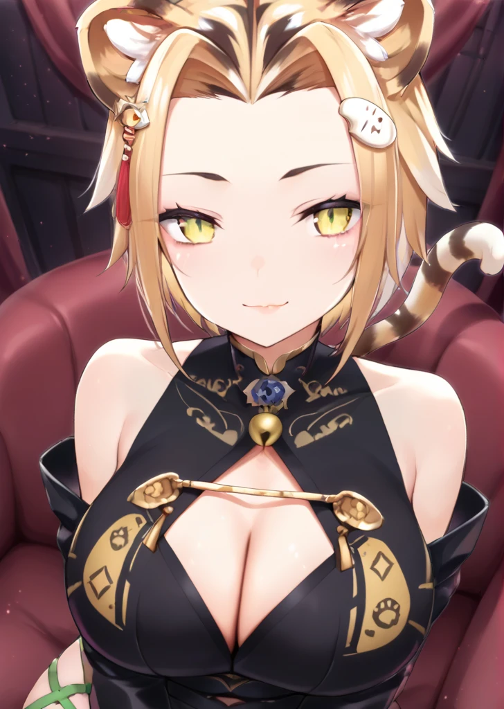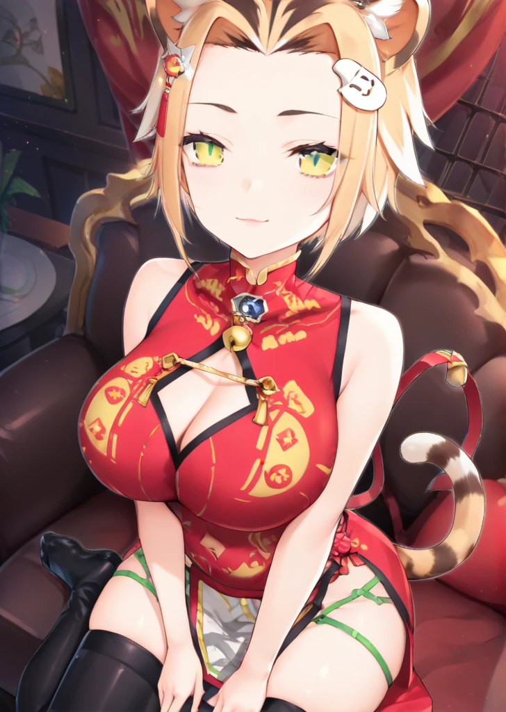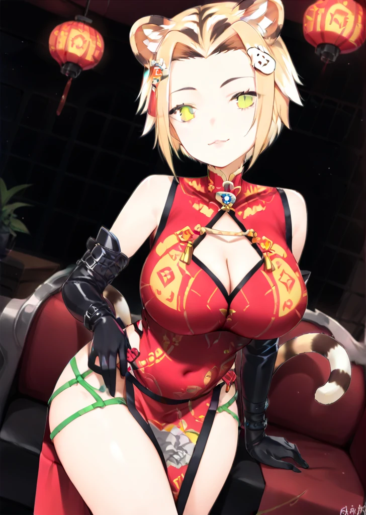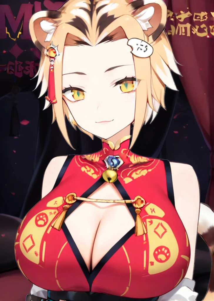 maimai, large breasts, yellow eyes, tiger ears, tiger girl, multicolored hair, chinese clothes,