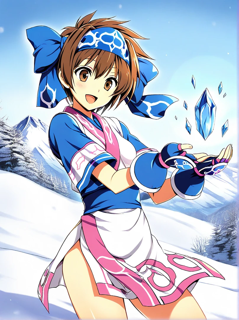 ainu clothes, fingerless gloves, blue bow, hairband, hair bow,