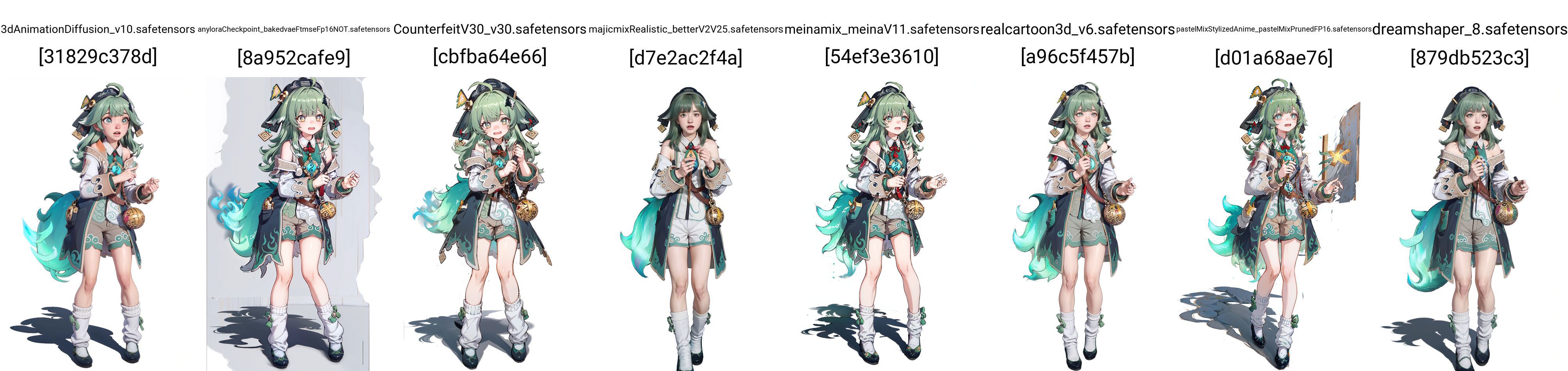 1.训练底模使用了NAI,lora具有更自由的发挥空间,你可以使用真人类、二次元以及各种风格的底模生成不同的藿藿,二次元推荐meinamix系列、anyloraCheckpoint、cetus、counterfit系列。当然不局限于这些,这些模型是我经常使用的。