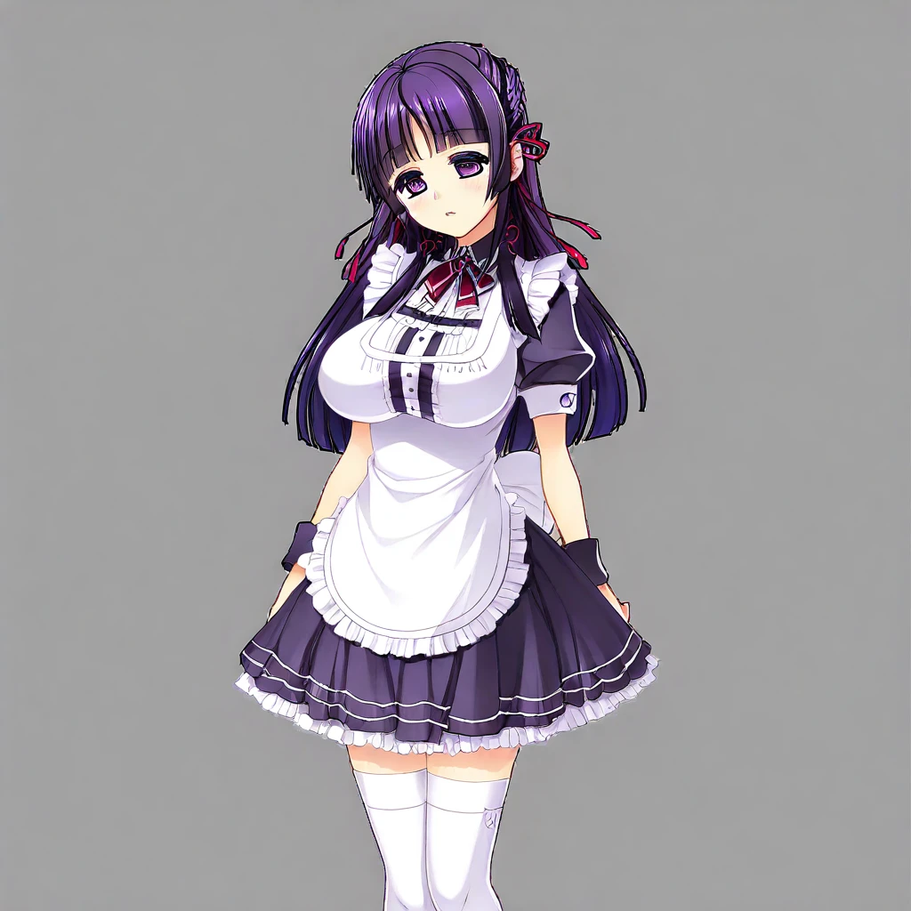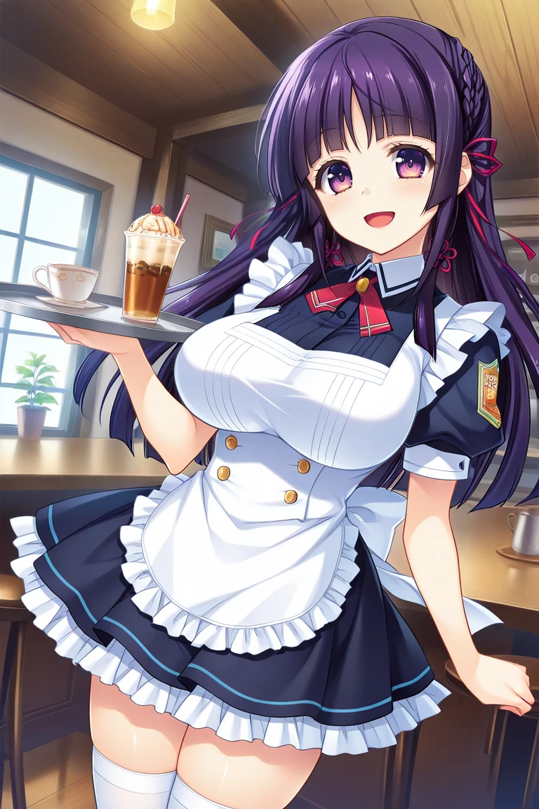 sumika-maid, maid dress, white apron, short sleeves, white thighhighs,