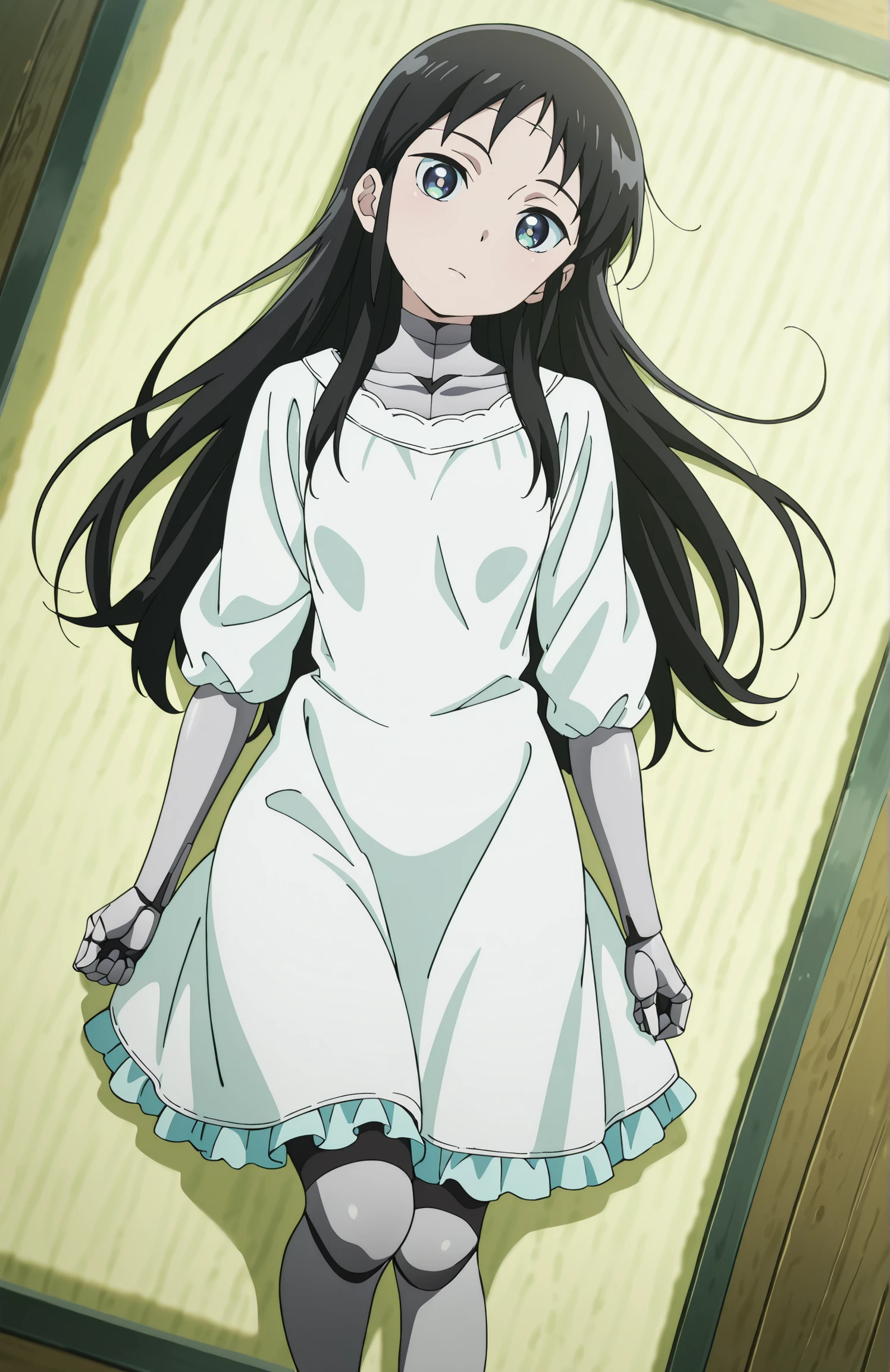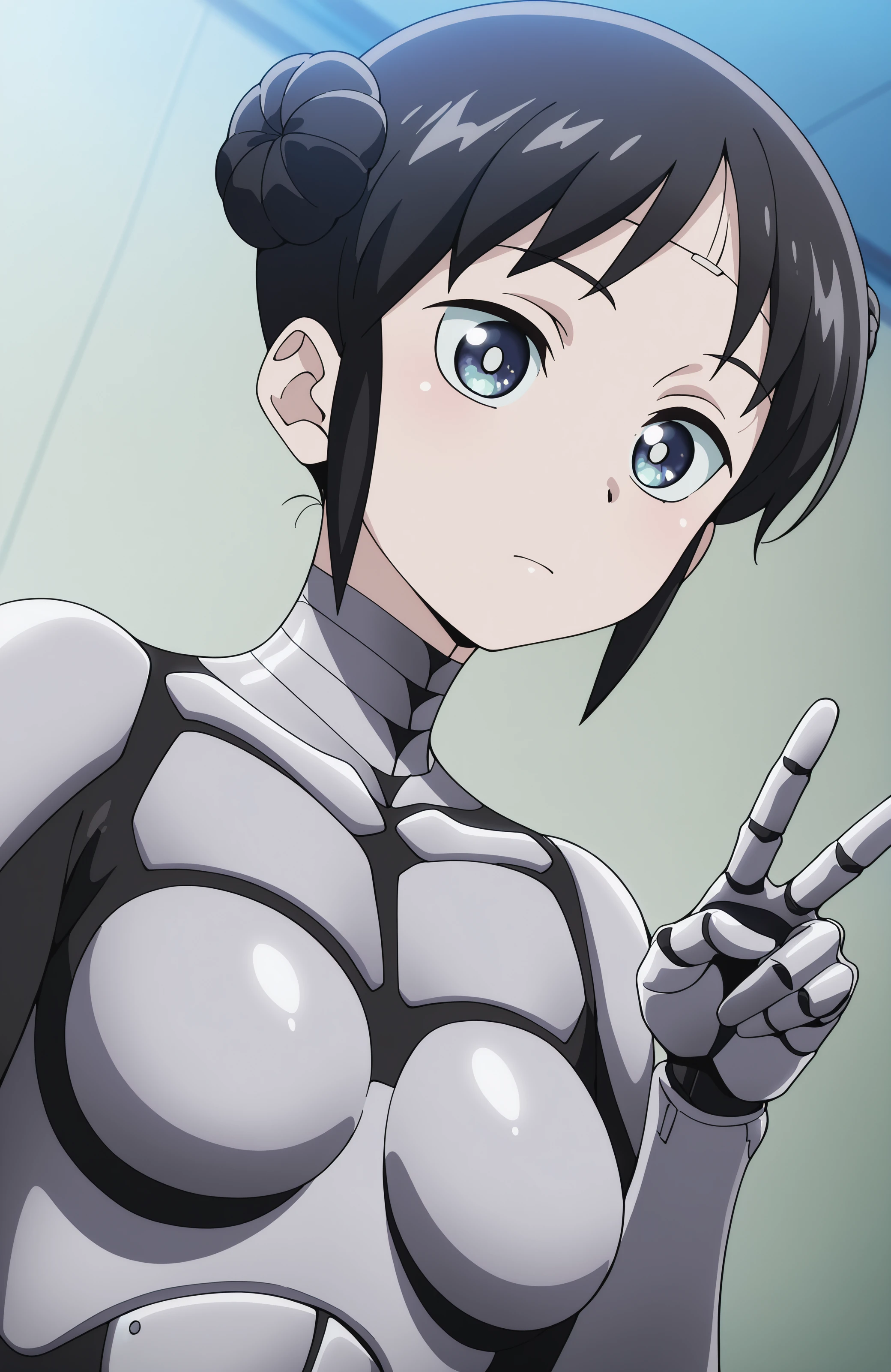 v0 Problems: Don't have all outfit so far, robot parts may be inconsistent and my need to things like "robot, mechanical parts, android, bodysuit, gray ?, black thighs"