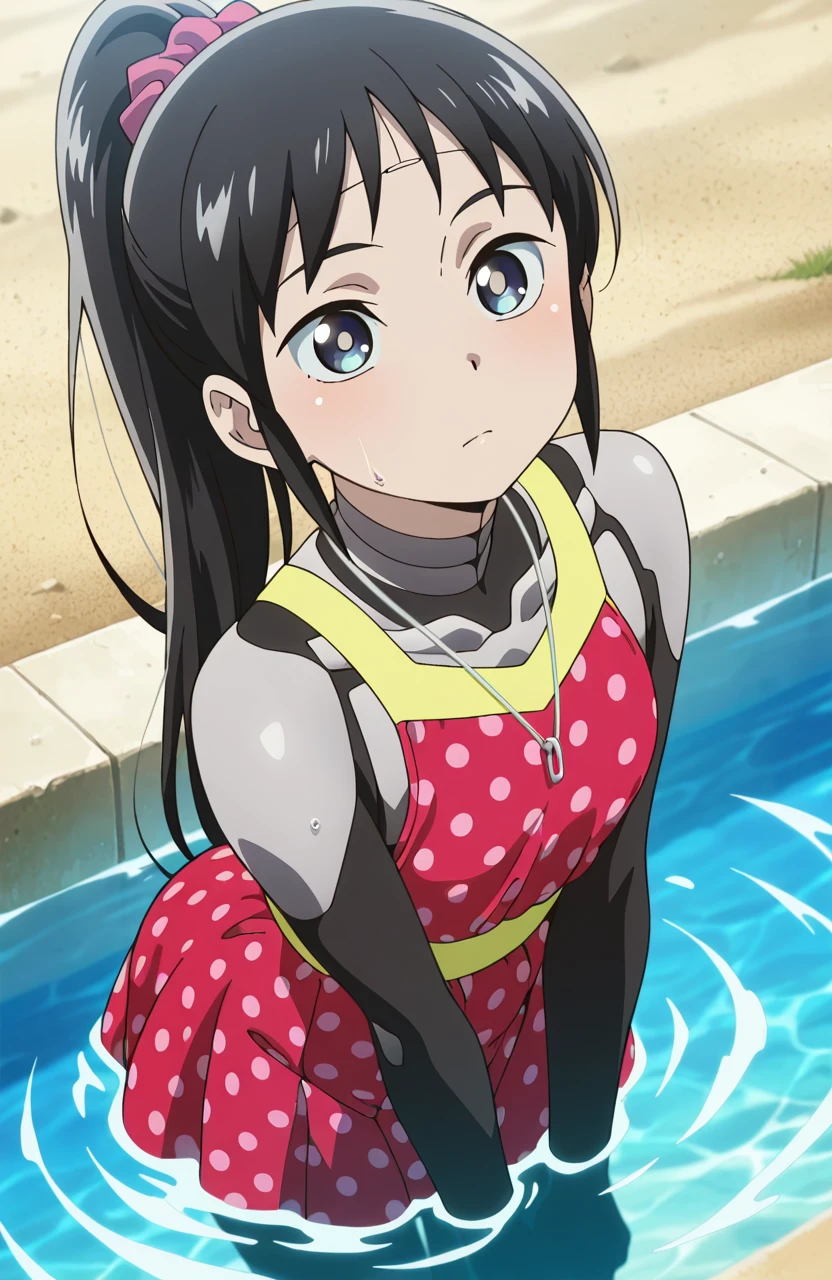 mina, long ponytail, polka dot, swimsuit, (may need dress)