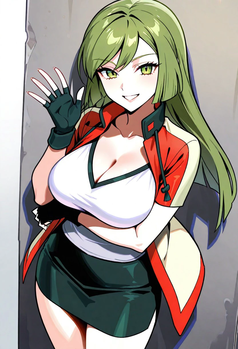 Trigger: 1girl, solo, AceORAS, green hair, long hair, hime cut, straight bangs, green eyes