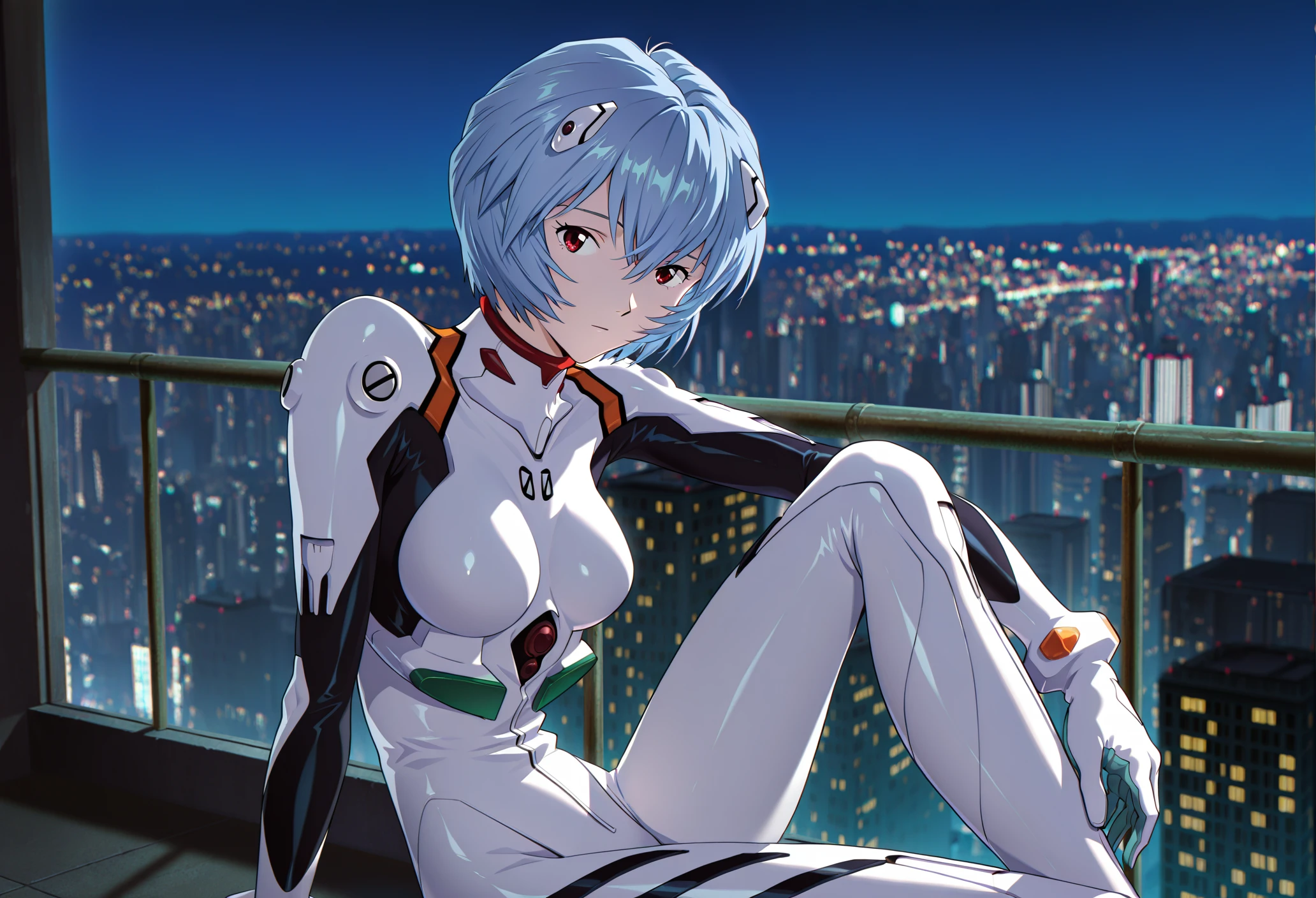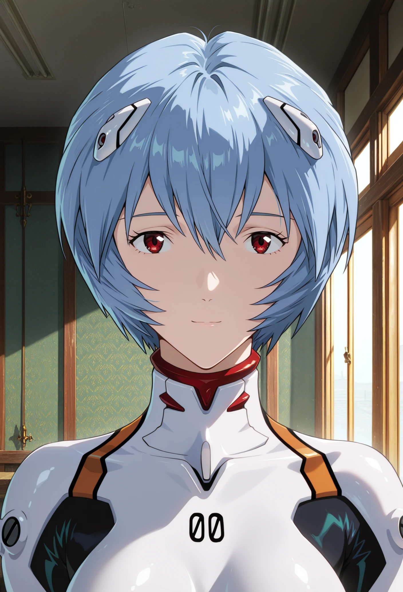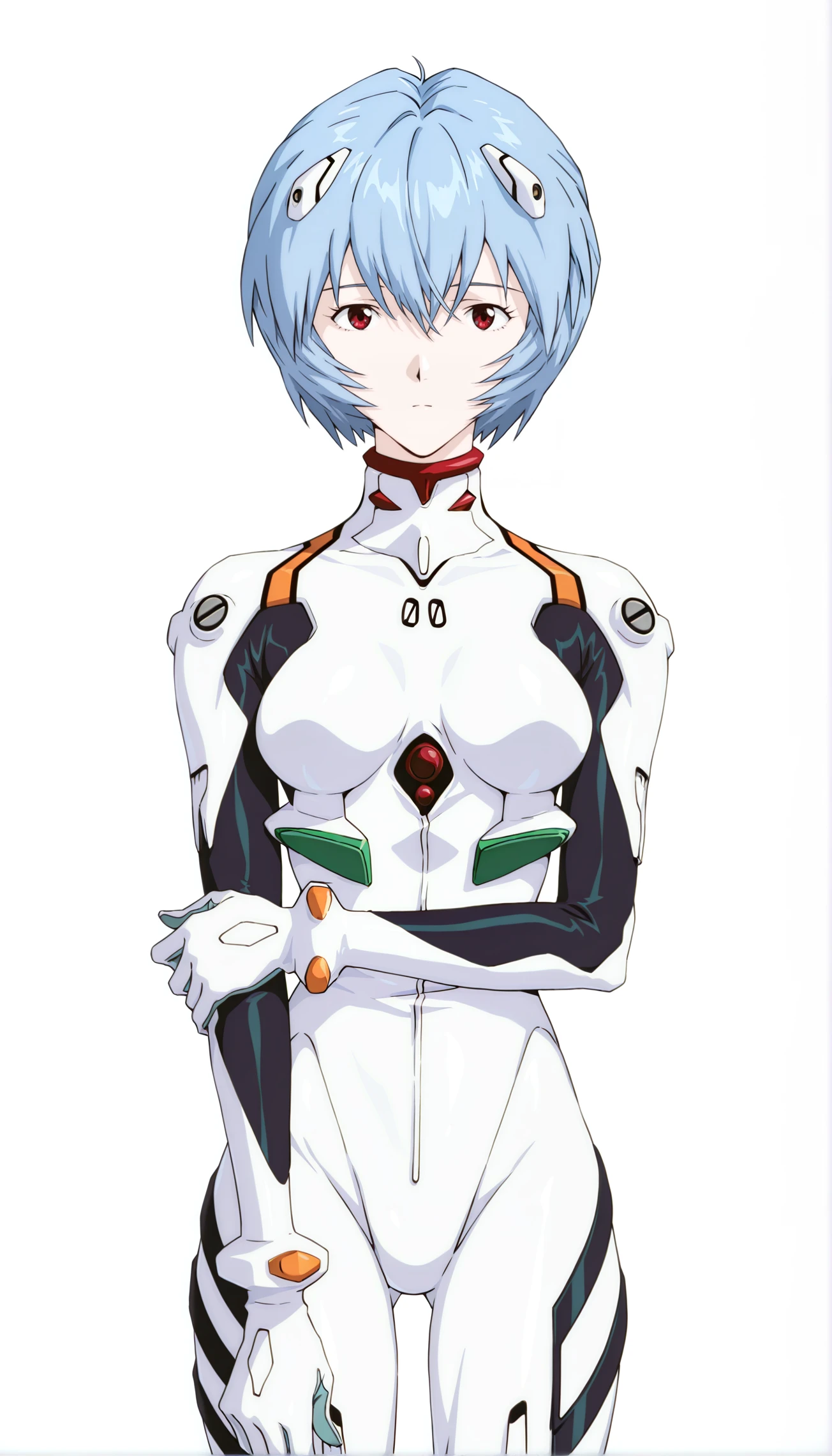 ayanami rei, 1girl, short hair, white bodysuit, plugsuit, pilot suit